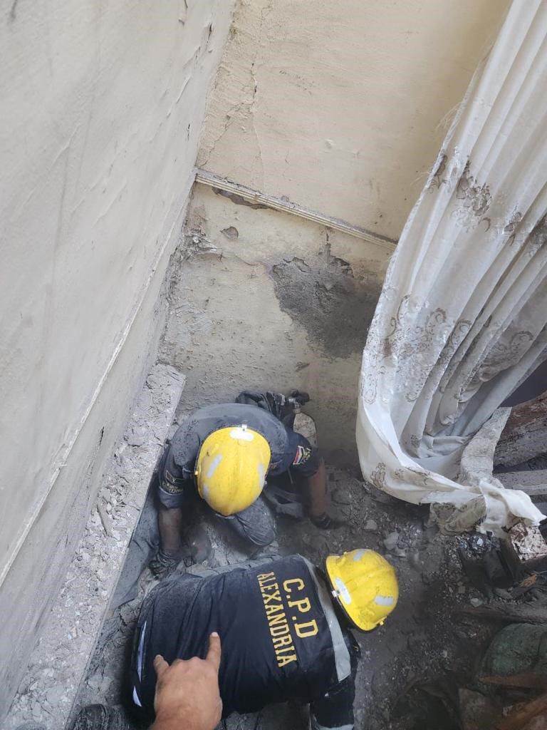 وعلى الفور انتقلت قوات إدارة الحماية المدنية بالإسكندرية وتبين سقوط جزء من سقف إحدى الحجرات بالطابق الثاني علوي حتى الطابق الأرضي بالعقار محل الواقعة مما أسفر عن احتجاز أحد الأشخاص "قاطن بشقة بالطابق الأرضي".