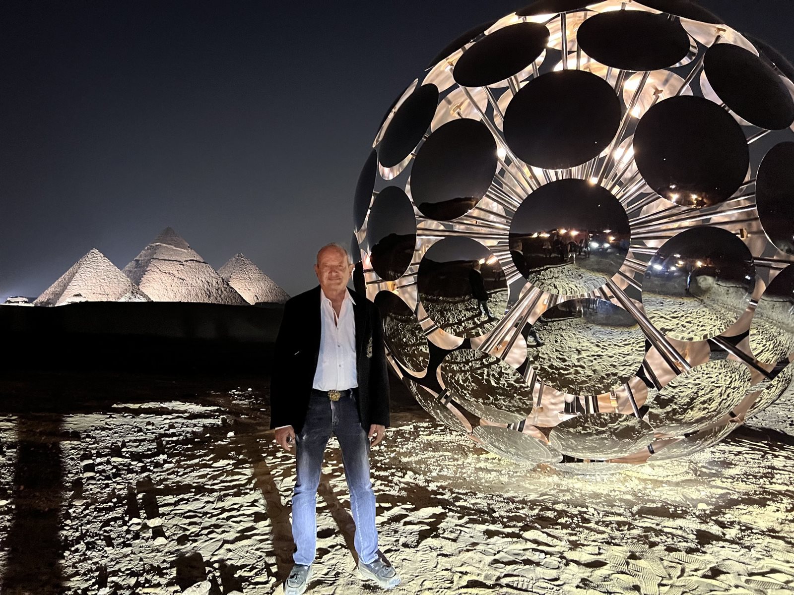 "الفن المصري".. ساويرس ينشر صورة جديدة بجوار الأهرامات