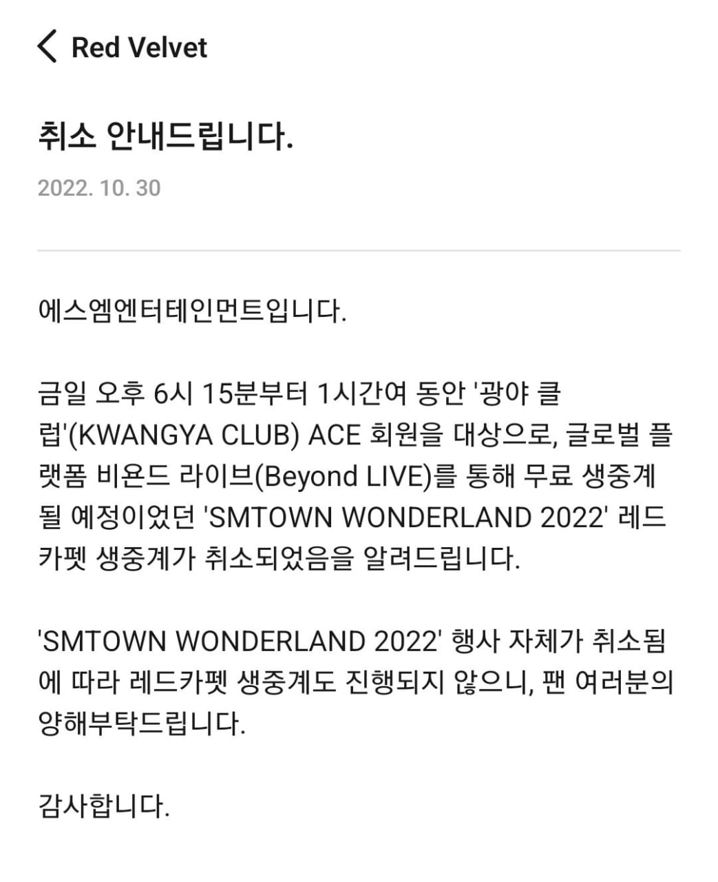 ألغت عدد من شركات الترفيه وعلى رأسهم وكالة "sm"، مساء اليوم السبت، عدد من الحفلات الغنائية بمناسبة عيد الهالوين في بيان لها على موقعها الرسمي، بسبب مقتل 146 شخصًا وإصابة أكثر من 150 شخصًا بسبب الاختناق، خلال احتفالهم بعيد الهالوين بمنطقة إيتايون بالعاصمة سيوال.