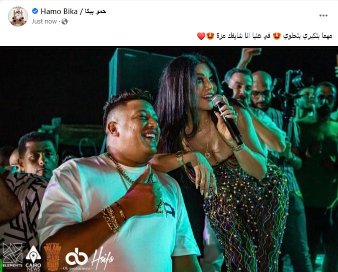 غازل حمو بيكا، مؤدي المهرجانات، الفنانة اللبنانية هيفاء وهبي، بعد التنمر الذي تعرضت له، مؤخرًا، بسبب تغير ملامحها نتيجة عملية التجميل التي أجرتها، ناشرًا صورة له مع الفنانة هيفاء.