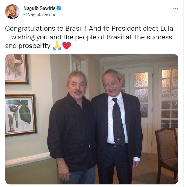 بعد فوز لولا دا سيلفا بالرئاسة.. ساويرس يوجه رسالة للشعب البرازيلي
