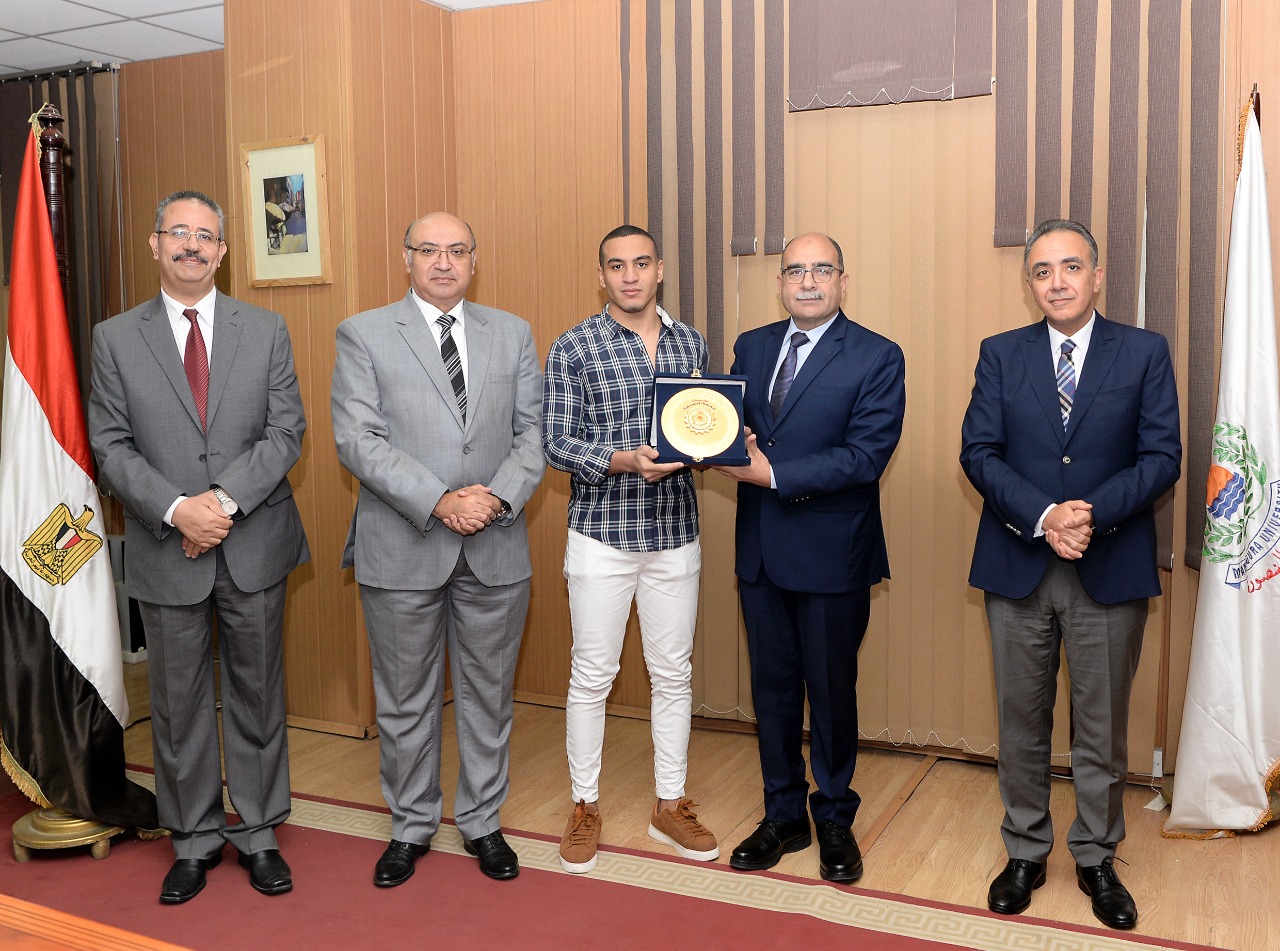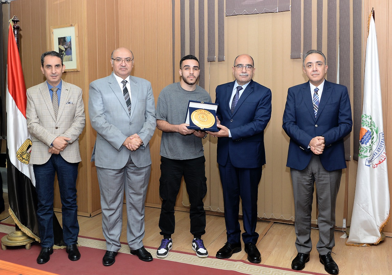 وأكد الدكتور محمود محمد المليجى حرص الجامعة على تكريم أبنائها المتفوقين رياضيًا ليكون ذلك حافزًا لجميع أبناءنا لمزيد من التفوق العلمي والرياضي وفي مختلف المجالات من أجل مستقبل أفضل لهم ولبلدنا الحبيب.