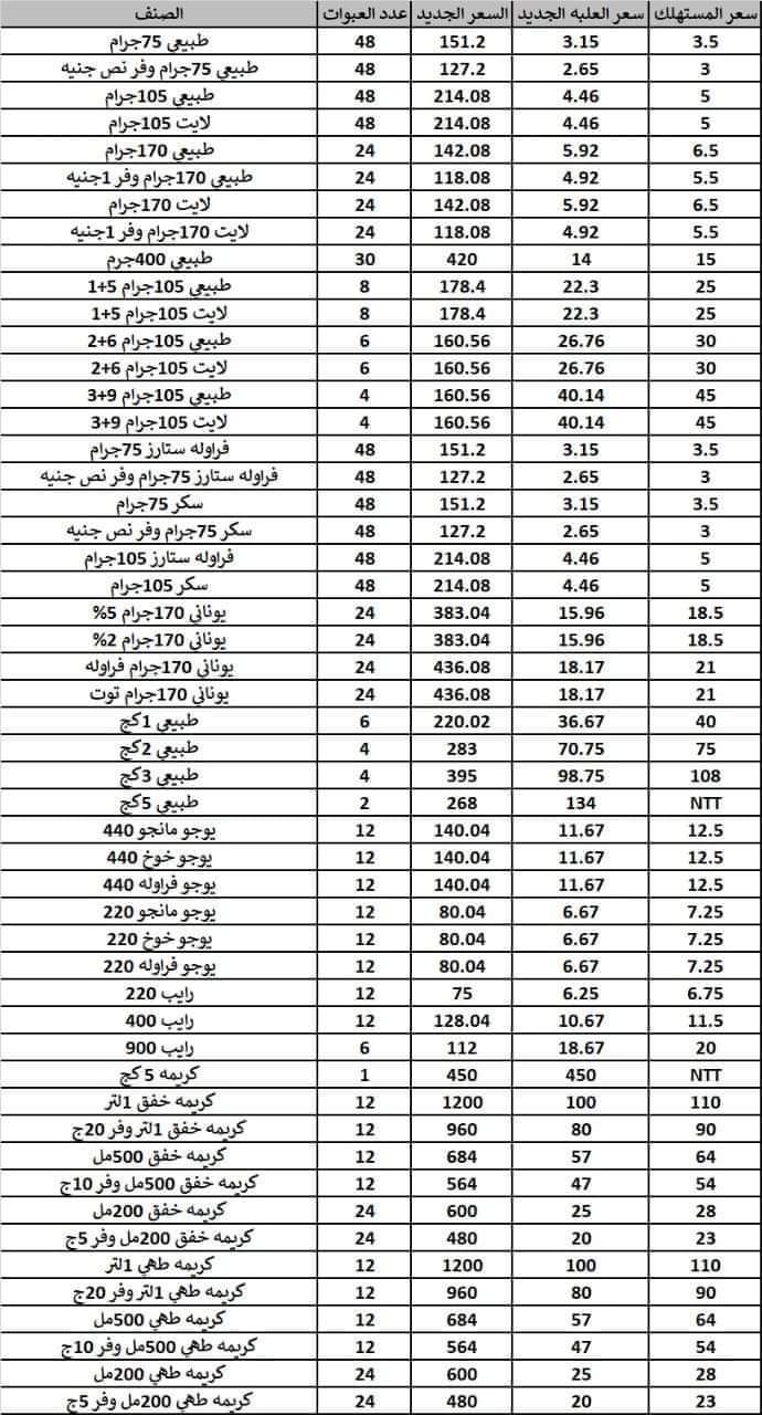 وبلغ سعر الرايب من شركة المراعي وزن 400 جرام نحو 11.5 جنيه، بدلا من من 10.5 جنيه.