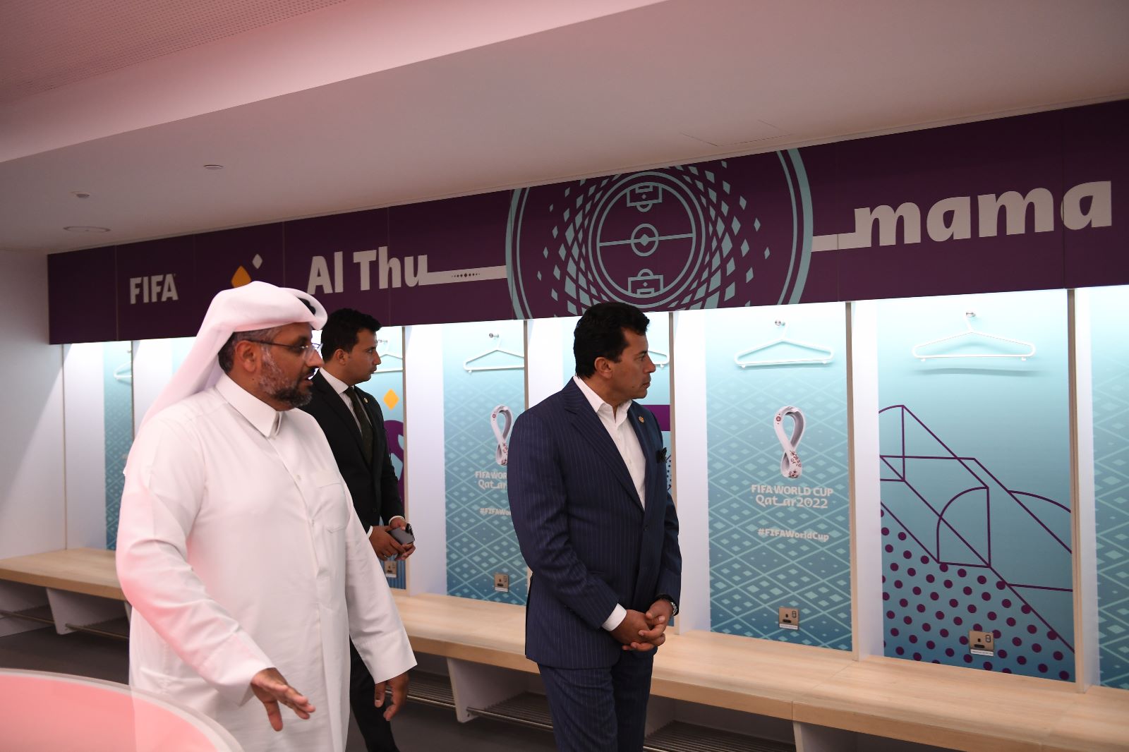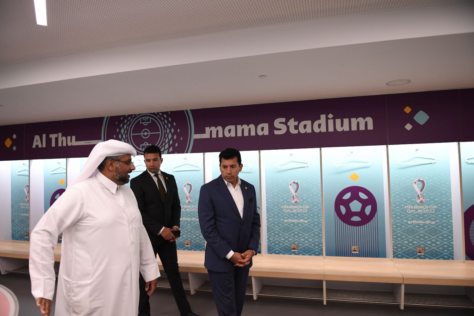 تفقد الدكتور أشرف صبحي وزير الشباب والرياضة، رئيس المكتب التنفيذي لمجلس وزراء الشباب والرياضة العرب، استاد الثمامة بمدينة الدوحة، والذي يستضيف مجموعة من مباريات كأس العالم لكرة القدم بقطر 2022.