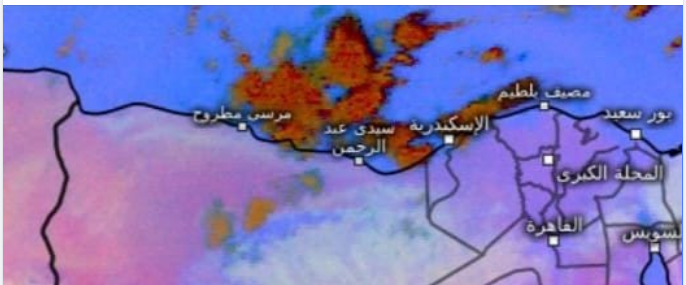 وقالت الهيئة:" تشير أخر صور الأقمار الصناعية إلى تكاثر السحب المنخفضة والمتوسطة والركامية الممطرة على مناطق من السواحل الغربية “فوكا- الضبعة- العلمين- سيدى عبد الرحمن- الإسكندرية”، يصاحبها سقوط أمطار متفاوتة الشدة تكون متوسطة ورعدية أحيانا.