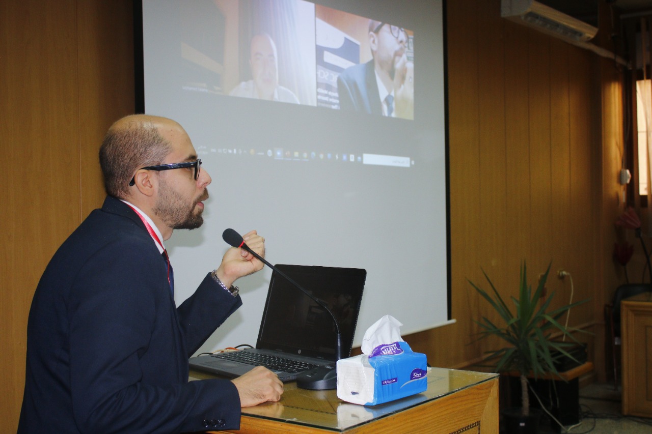 وقدم الدكتور تامر أبو السعد وكيل الكلية لشئون البحث العلمى نبذة عن التصنيف الدولى لكلية الطب جامعة المنصورة وقد ركز على تزايد المقالات العلمية فى المجلات العلمية وعدد الاستشهادات المرجعية للأبحاث التى تتم داخل كلية الطب .