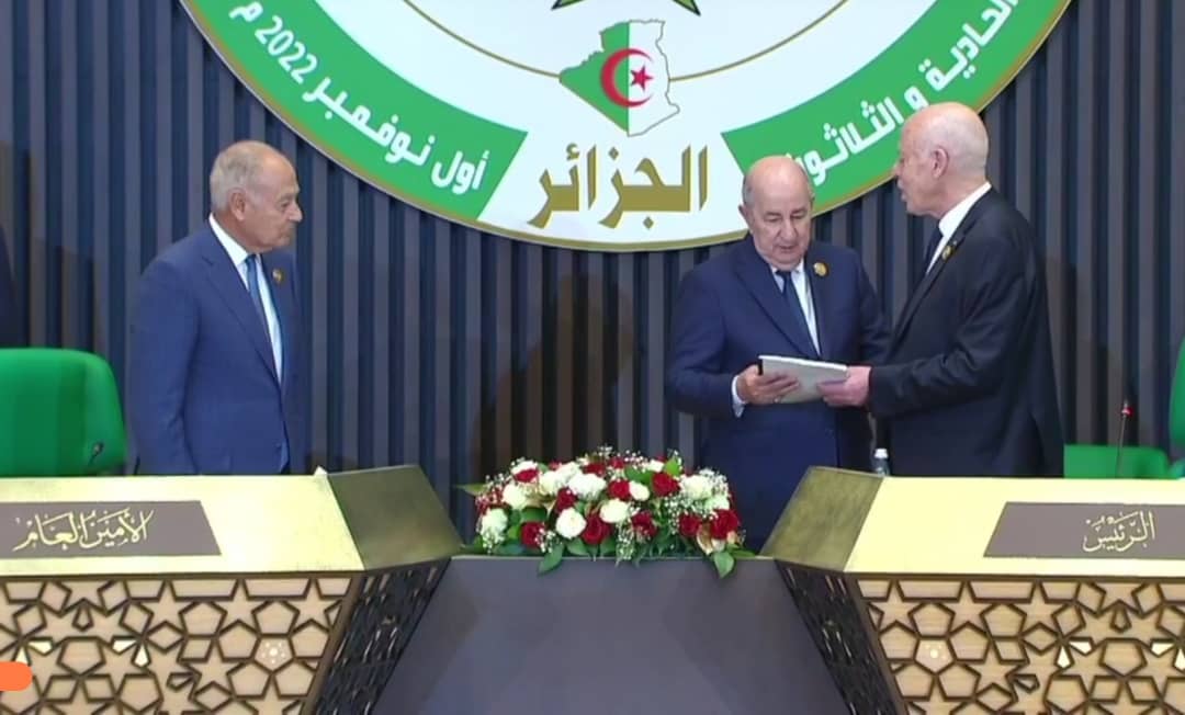 سلم الرئيس التونسي قيس سعيد رئاسة مجلس الجامعة العربية على مستوى القمة، لنظيره الجزائري عبدالمجيد تبون لتترأس الجزائر الدورة العادية الحادية والثلاثين للقمة.