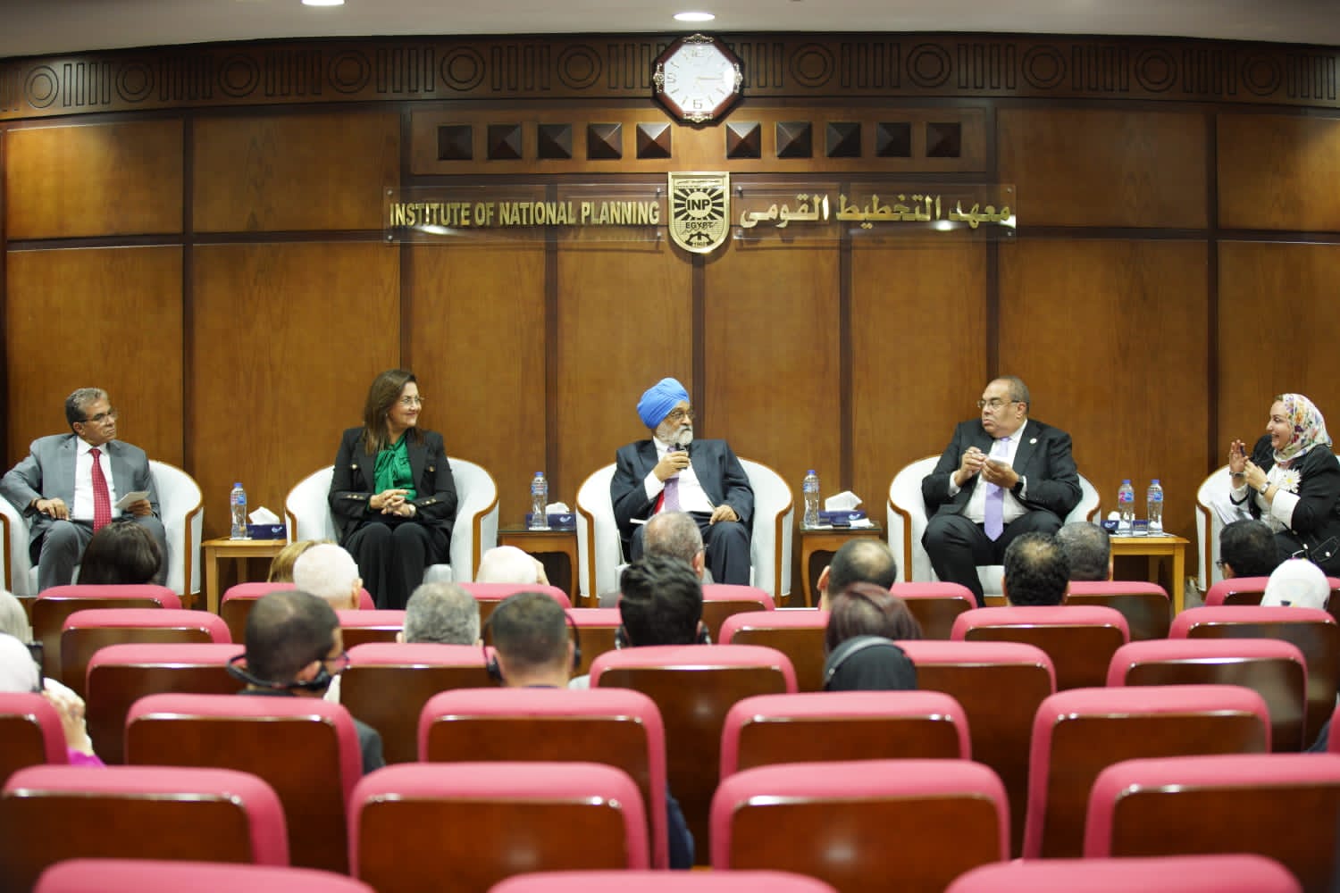 جاء ذلك بحضور الدكتور أشرف العربي رئيس معهد التخطيط القومي، الدكتور محمود محيي الدين، رائد المناخ في مرتمر الأطرافCOP27، مونتيك سينغ أهلواليا نائب رئيس لجنة التخطيط الهندي، ومستشار وزارة المالية، الدكتور خالد فهمي وزير البيئة السابق السفير وائل أبو المجد المُمثل الخاص للرئيس المُعين للدورة 27 لمؤتمر المناخ، والدكتورة عادلة رجب أستاذ بقسم الاقتصاد ومديرة مركز البحوث والدراسات الاقتصادية والمالية بكلية الاقتصاد والعلوم السياسية، جامعة القاهرة.