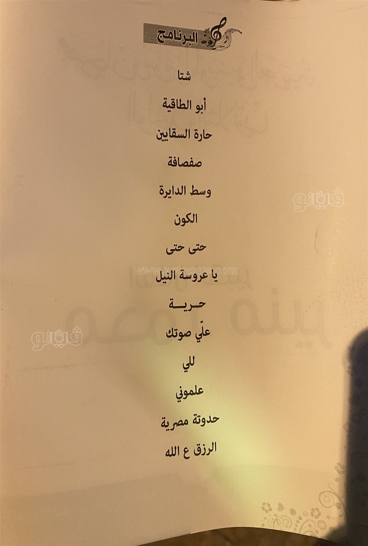 ويتغنى الكينج محمد منير بباقة من أجمل أغانيه وعددها ١٤ أغنية خلال الحفل كالتالي: