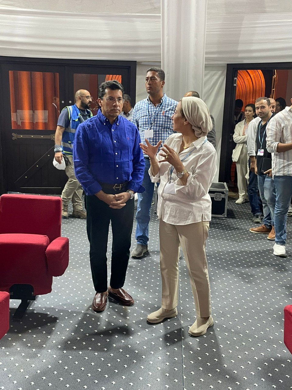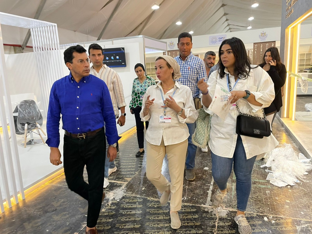 تفقد الدكتور أشرف صبحي وزير الشباب والرياضة، والدكتورة ياسمين فؤاد وزيرة البيئة المنسق الوزاري ومبعوث مؤتمر المناخ COP 27، التجهيزات النهائية بالمنطقة الخضراء بمحيط المركز الدولي للمؤتمرات لاستقبال المشاركين في قمة المناخ.