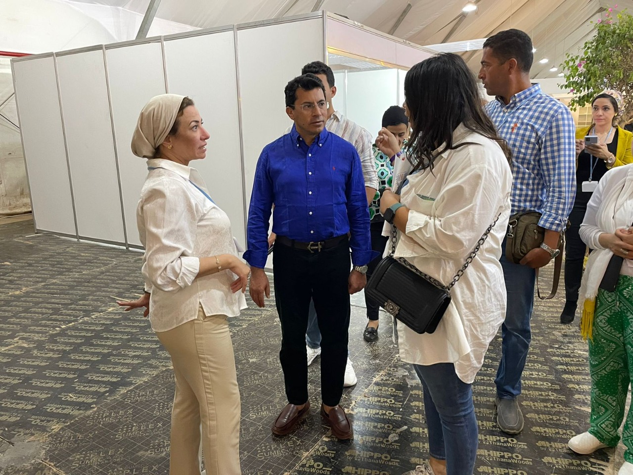 استعدادا لمؤتمر المناخ.. وزيرا الشباب والبيئة يتفقدان التجهيزات النهائية للمنطقة الخضراء