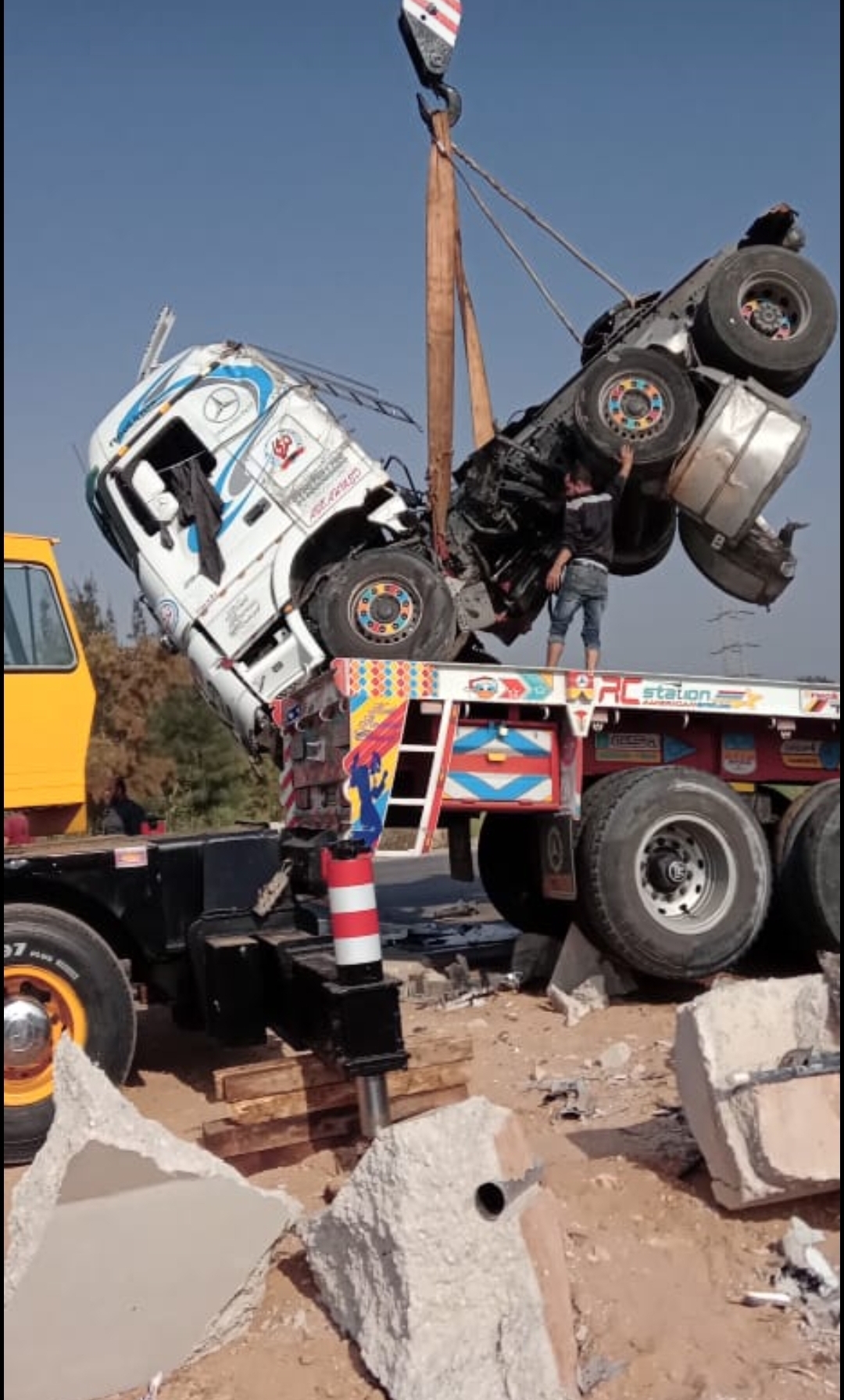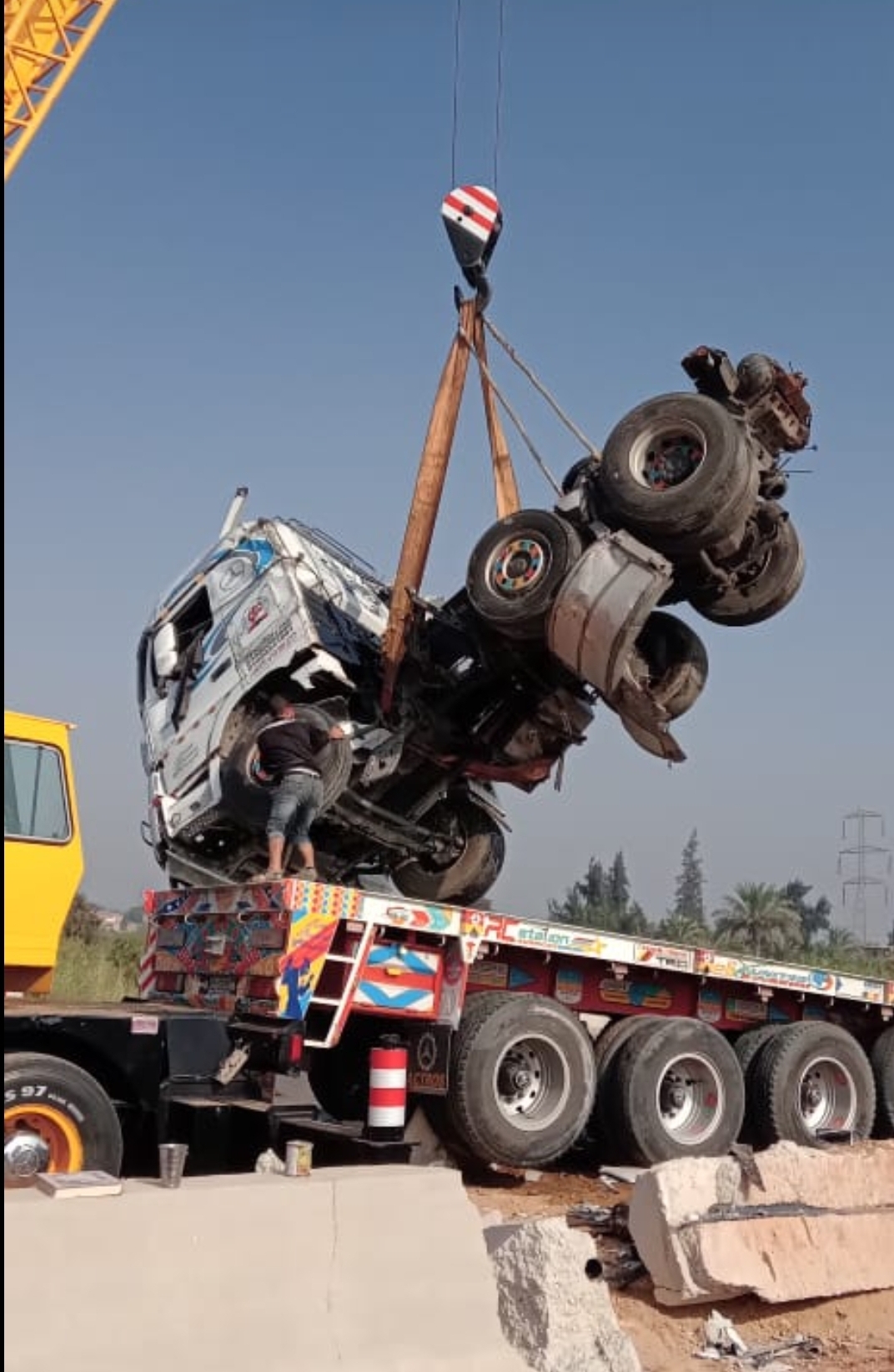 إصابة سائق في حادث انقلاب سيارة نقل ثقيل بأبوصوير بالإسماعيلية | صور