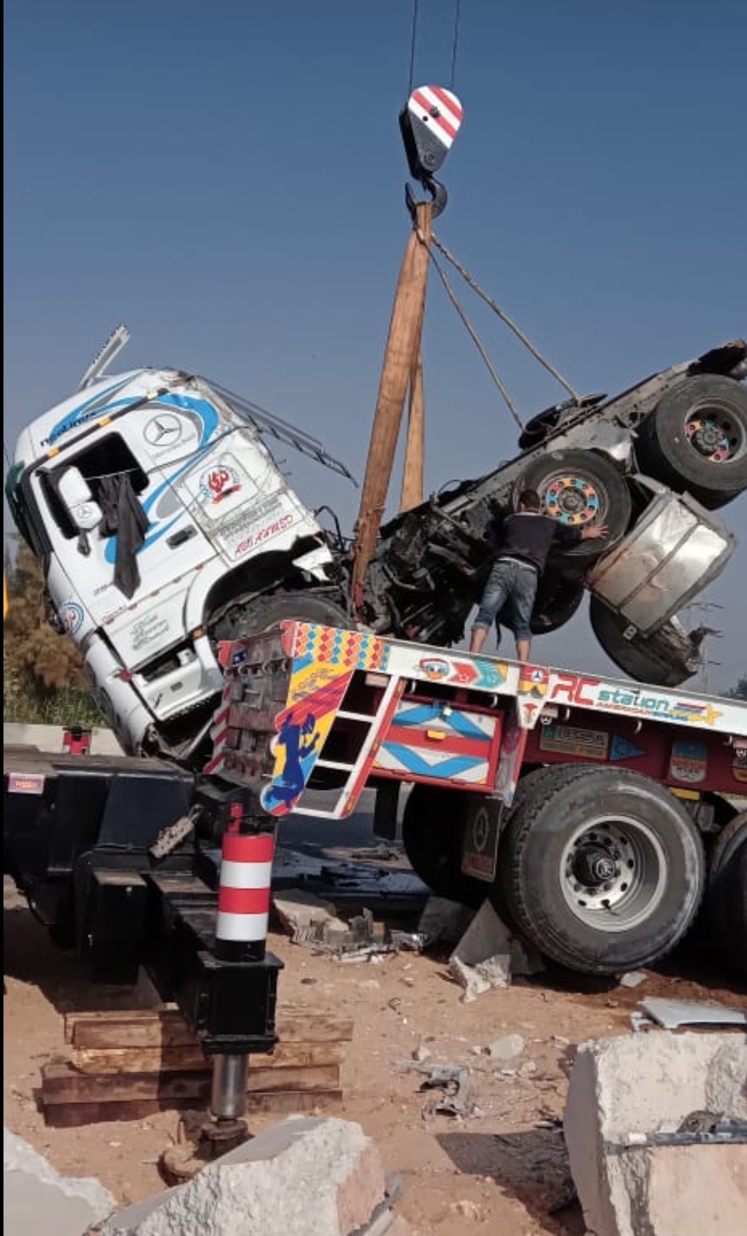 وتبين إن المصاب هو السائق محمد حسين محمد حسن يبلغ من العمر ٢٥ عاما، من الدقهلية دكرنس وتم تحديد الخسائر وهي عبارة عن دمار سيارة مرسيدس تريلا، تحمل أرقام الكبينة د ط ب ٤٦٥٥، ورقم المقطورة د ف ص ٢٤٩٥، بخسائر نيو جرسى.