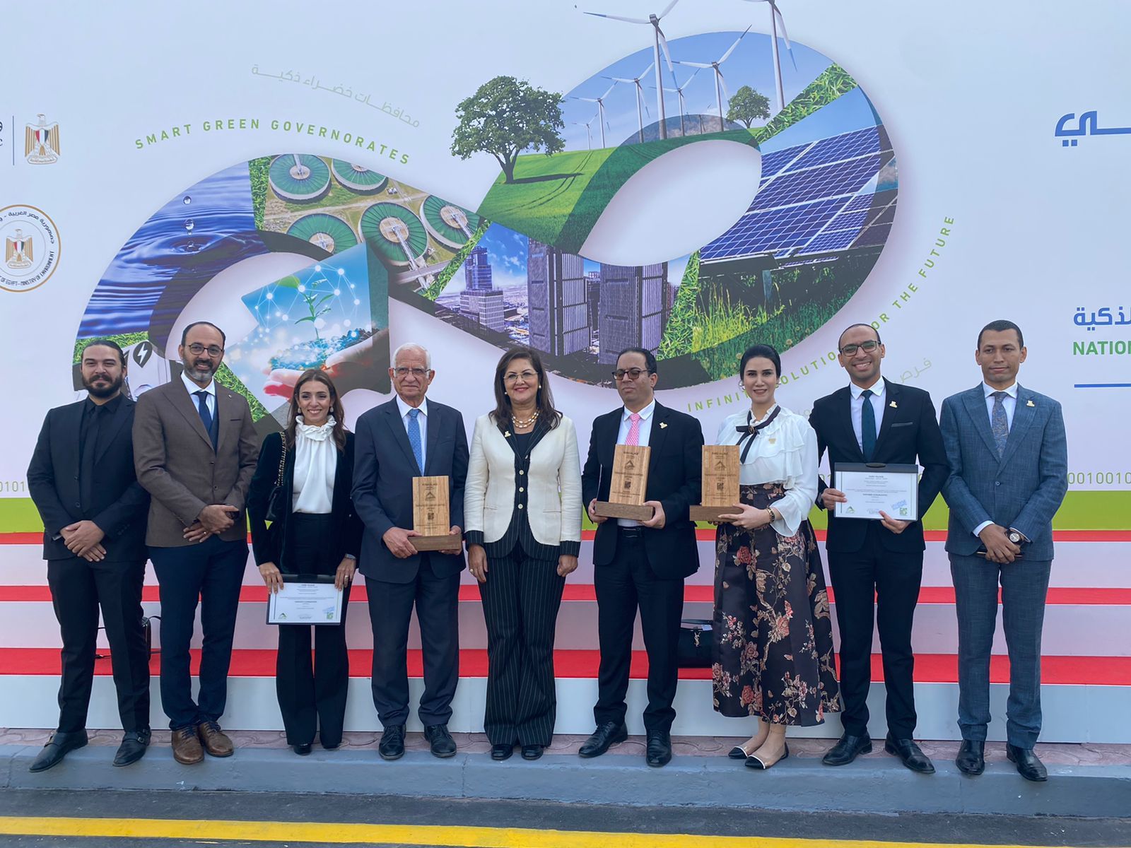 تسلم الجائزة الدكتور جميل حلمي نائب وزيرة التخطيط والتنمية الاقتصادية، والمهندسة سارة البطوطي رئيس مجلس إدارة إيكونسلت للاستشارات الهندسية والبيئية والدكتور صلاح الحجاز رئيس الجمعية المصرية للأبنية الخضراء، والأستاذة آية عمر رئيس مجلس امناء مؤسسة حياة كريمة.