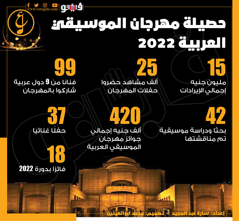 حصيلة مهرجان الموسيقي العربية 2022 | انفوجراف الجمعة 04/نوفمبر/2022 - 02:02 م 11/4/2022 2:02:00 PM مهرجان الموسيقي العربية سارة عبد المجيد شارك طباعة 18 حجم الخط شارك طباعة الموسيقي العربية 2022 الموسيقي العربية جوائز مهرجان الموسيقى العربية مهرجان الموسيقي العربية 2022 مهرجان الموسيقى العربية مهرجان الموسيقي