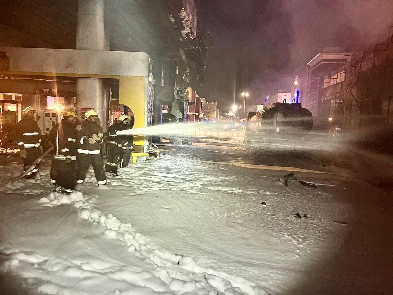 ونشر صور الناقلة المشتعلة داخل محطة للوقود، وعملية إخماد النيران بجهود الإطفائيين الذين استخدموا الرغوة البيضاء.
