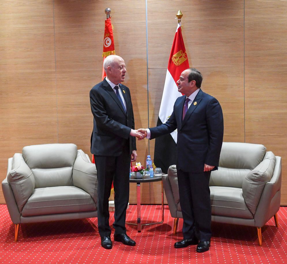 "كما التقى الرئيس السيسي مع الرئيس قيس سعيد، رئيس الجمهورية التونسية، وذلك على هامش مشاركة الرئيس في القمة العربية في الجزائر".