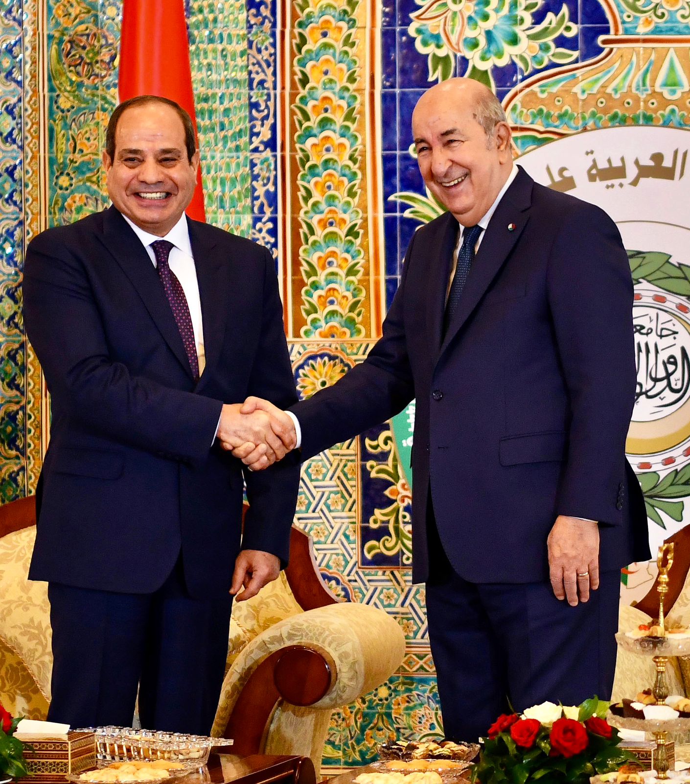 من جانبه؛ رحب الرئيس تبون بزيارة الرئيس إلى الجزائر، مؤكدًا اعتزاز الجزائر بما يربطها بمصر من علاقات وثيقة ومتميزة على المستويين الرسمي والشعبي، والاهتمام بتكثيف العمل نحو استطلاع آفاق جديدة للتعاون المشترك في شتي المجالات، ومشيدًا بما حققته مصر بقيادة الرئيس خلال السنوات الماضية على الصعيد الداخلي من إنجازات في مجالات الأمن والاستقرار والتنمية.
