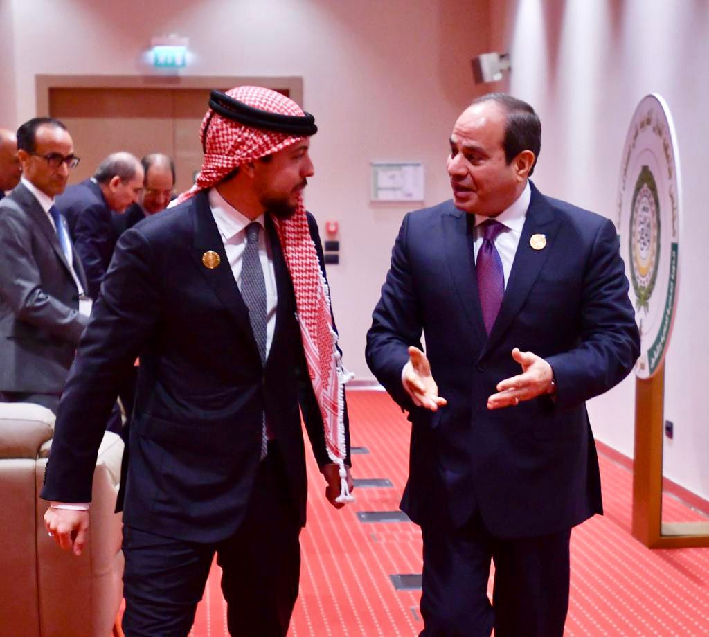 كما التقى الرئيس السيسي مع سمو الأمير الحسين بن عبد الله، ولي عهد المملكة الأردنية الهاشمية، وذلك على هامش مشاركة الرئيس في القمة العربية في الجزائر.