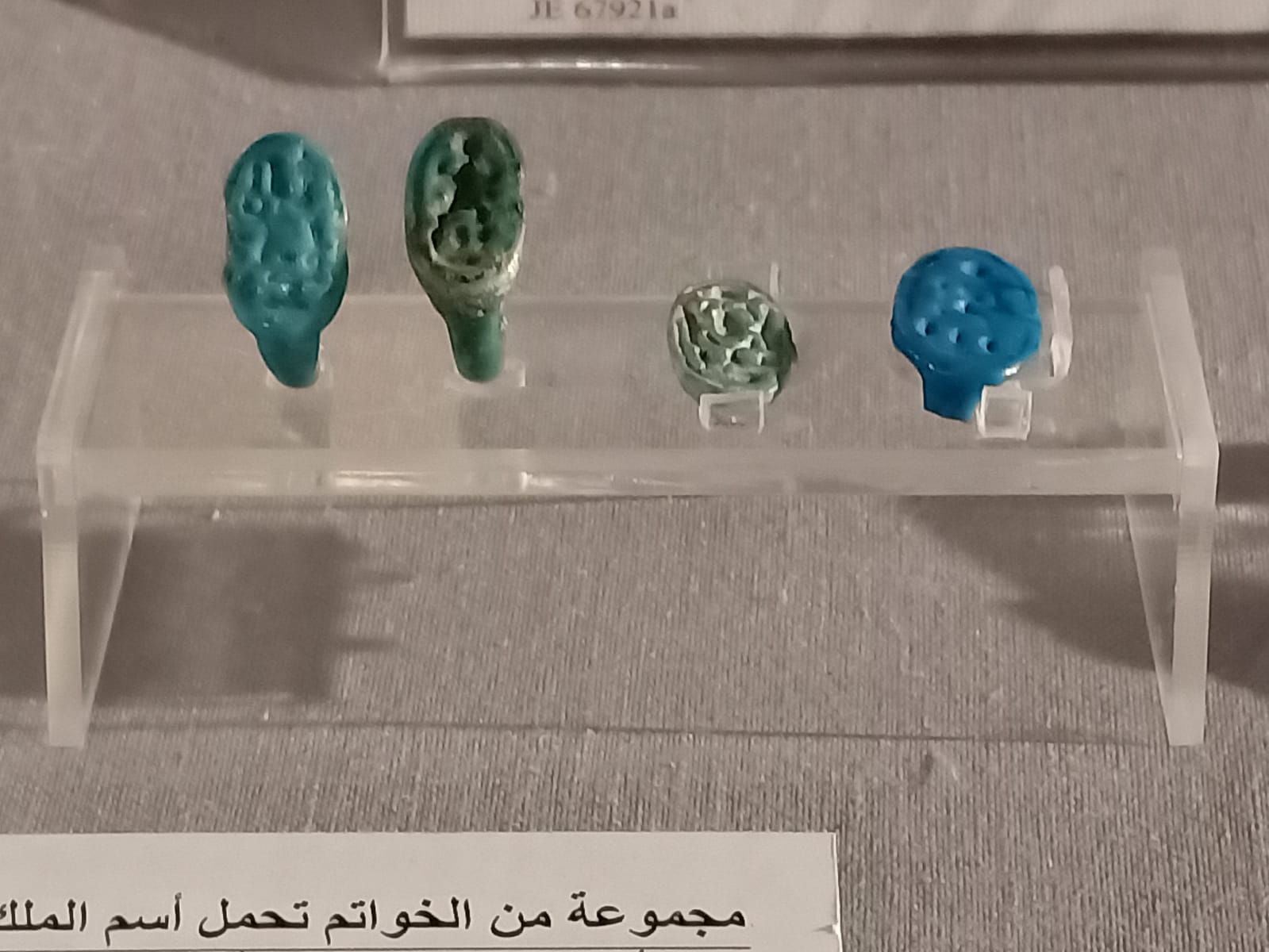 ومن أبرز تلك القطع مومياء السيدة الصغيرة يرجح أنها والدة الملك توت عنخ آمون (الملكة كيا)، وأربعة تماثيل للفرعون الذهبي تم اكتشافها ضمن أحد عشر تمثال في خبيئة معبد الكرنك، ومجموعة من الخواتم تحمل أسم الملك، ولوح صغير من الفاينس منقوش من كلا الوجهين بأسمائه، ومجموعة من الجعارين تحمل اسم الملكة "عنخ اس ان أمون" زوجة الملك توت عنخ أمون، وتمثال للملك اخناتون مع زوجته كيا بالشعر المستعار المميز لها، والذي تم اكتشافه في تل العمارنة، وإناء كانوبي لكيا أم توت عنخ آمون، ورأس تمثال للملك أمنحتب الثالث تم اكتشافها في خبيئة الكرنك، ورأس تمثال للملكة تي زوجة الملك أمنحوتب الثالث، وأم الملك اخناتون تم اكتشافها في معبد حتحور بسرابيط الخادم في سيناء.
