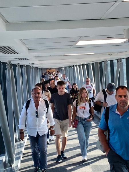 واستقبل المطار أول رحلة بالجسر المائى فور هبوط الطائرة تعبيرا عن الترحيب بعودة رحلات الشركة البولندية مرة أخرى وقام فريق العلاقات العامة فى مطار طابا بالترحيب بالسائحين وتيسير إجراءات وصولهم.