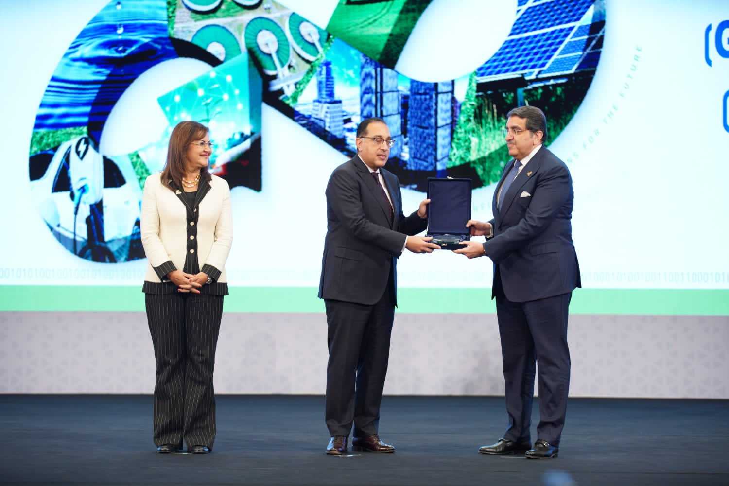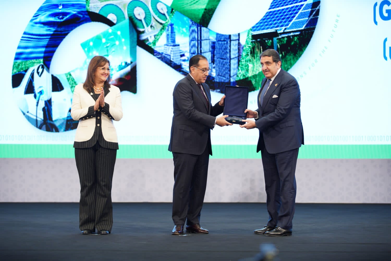 وقدم الدكتور مصطفى مدبولي رئيس مجلس الوزراء التكريم إبراهيم سرحان رئيس مجلس الإدارة والرئيس التنفيذي لمجموعة "إي فاينانس" للاستثمارات المالية والرقمية، لدورها الكبير فى مبادرة إحلال السيارات للعمل بالغاز الطبيعي، والتى قدمت خلالها شركة "إي فاينانس" التباعة الكثير من عمليات وجهود التحول الرقمي لضمان تيسير الإجراءات ونجاح تطبيق المنظومة وفقًا لأحدث النظم والآليات الرقمية.