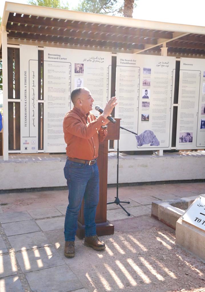 وفي كلمته خلال الافتتاح، أشار الدكتور مصطفى وزيري الأمين العام للمجلس الأعلى للآثار إلى احتفال اليوم بمرور ١٠٠ عام على اكتشاف مقبرة الملك الصغير توت عنخ آمون حيث استطاع هذا الكشف أن يُبهر العالم أجمع، موجهًا الشكر لكل من ساهم في هذا الاحتفال وخاصة من أبناء المجلس الأعلى للآثار ومنطقة آثار القرنة بالأقصر، وسفارتي الولايات المتحدة الأمريكية والمملكة المتحدة، ومركز البحوث الأمريكي بالقاهرة.