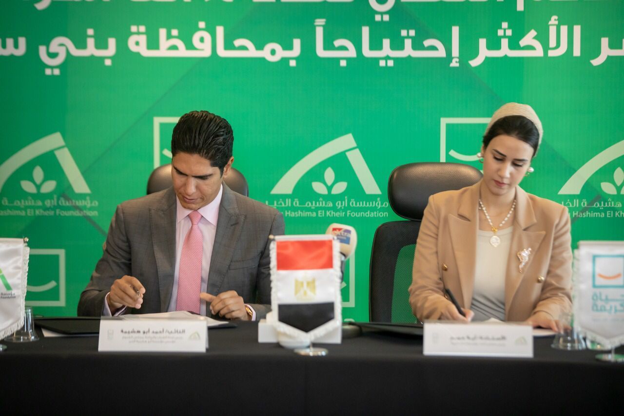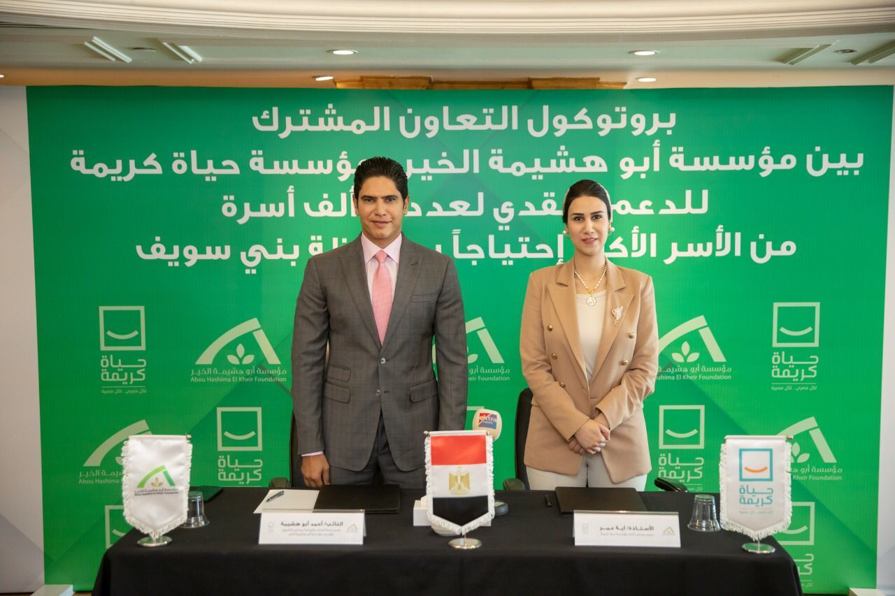 وقعت صباح اليوم السبت مؤسسة حياة كريمة بروتوكول تعاون مشترك مع مؤسسة أبو هشيمة الخير، لتقديم الدعم النقدي لنحو ١٤ ألف أسرة ضمن الأولى بالرعاية بمحافظة بني سويف.
