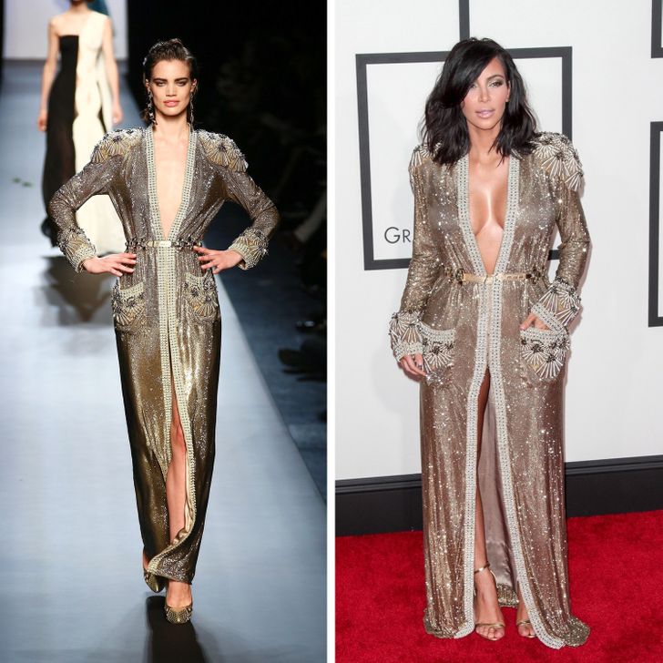 أعطت كيم كعادتها نوعًا من الإثارة للفستان المسطح على غيرها والذي قد يره البعض أفضل، في حين يختلف البعض الآخر أن على العارضة يبدو أرقى، ولكن في كلتا الحالتين لا شكل من الإضافة التي تعطيها كيم لكل ملابسها.
