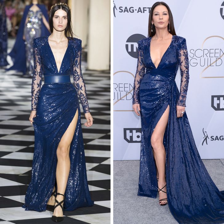 برغم تقارب مقاسات الممثلة من تلك الخاصة بأي عارضة إلا أنها تحرص على إضافة بعض التفاصيل لتظهر تمييزها، ومع هذه الإضافات، إلا أن الفستان مازال يبدو أفضل على الجسد الذي صنع من أجله.