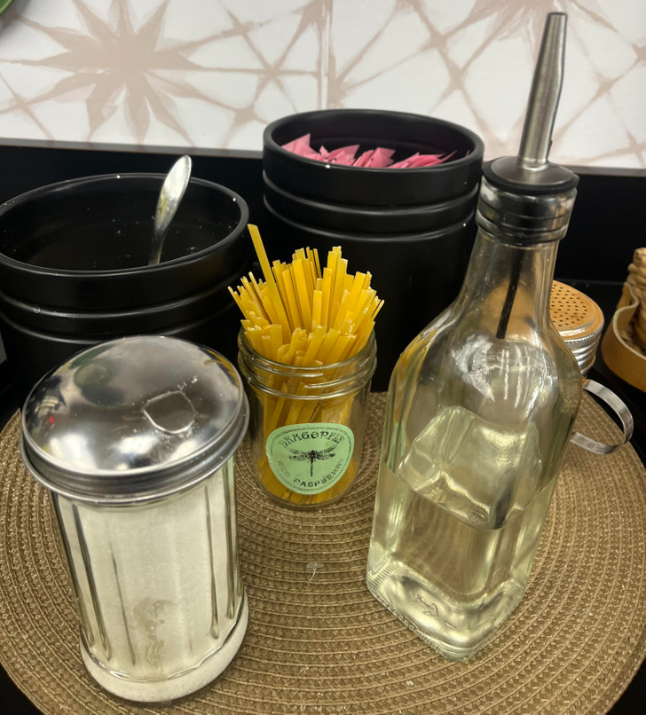 ٢. بينما عبر آخر عن ذهول عندما وجد أحد المطاعم بافلو، نيويورك يستخدم أعواد المكرونة لتقليب المشروبات الساخنة كريمة للحفاظ على البيئة لتجنب عدم إستخدام المعالج الخشبية أو البلاستيكية.