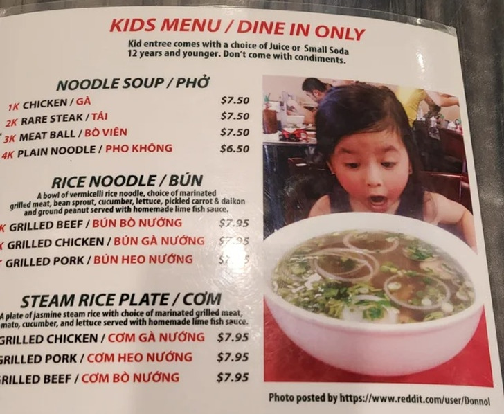 ٩. أبهر هذا المطعم الفيتنامي عملائه بنزاهته وأمانته حيث أعطى حقوق الملكية لموقع ريد ات على الصورة بقائمة الطعام خاصتهم كي لا ينسبها لنفسه.