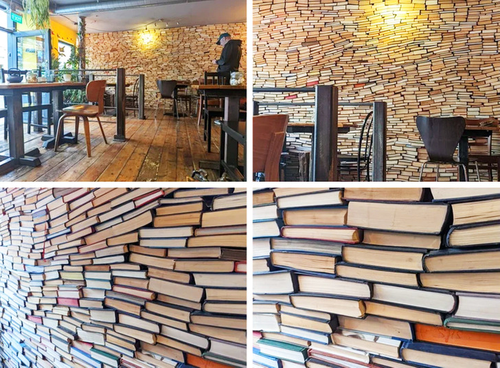 ١٤. قد تكون من عشاق القراءه ولكن ليس بقدر هذا المطعم ببيدفولدو، انجلتر الذي لديه “ورق حائط” مصنوع من كتب حقيقية.