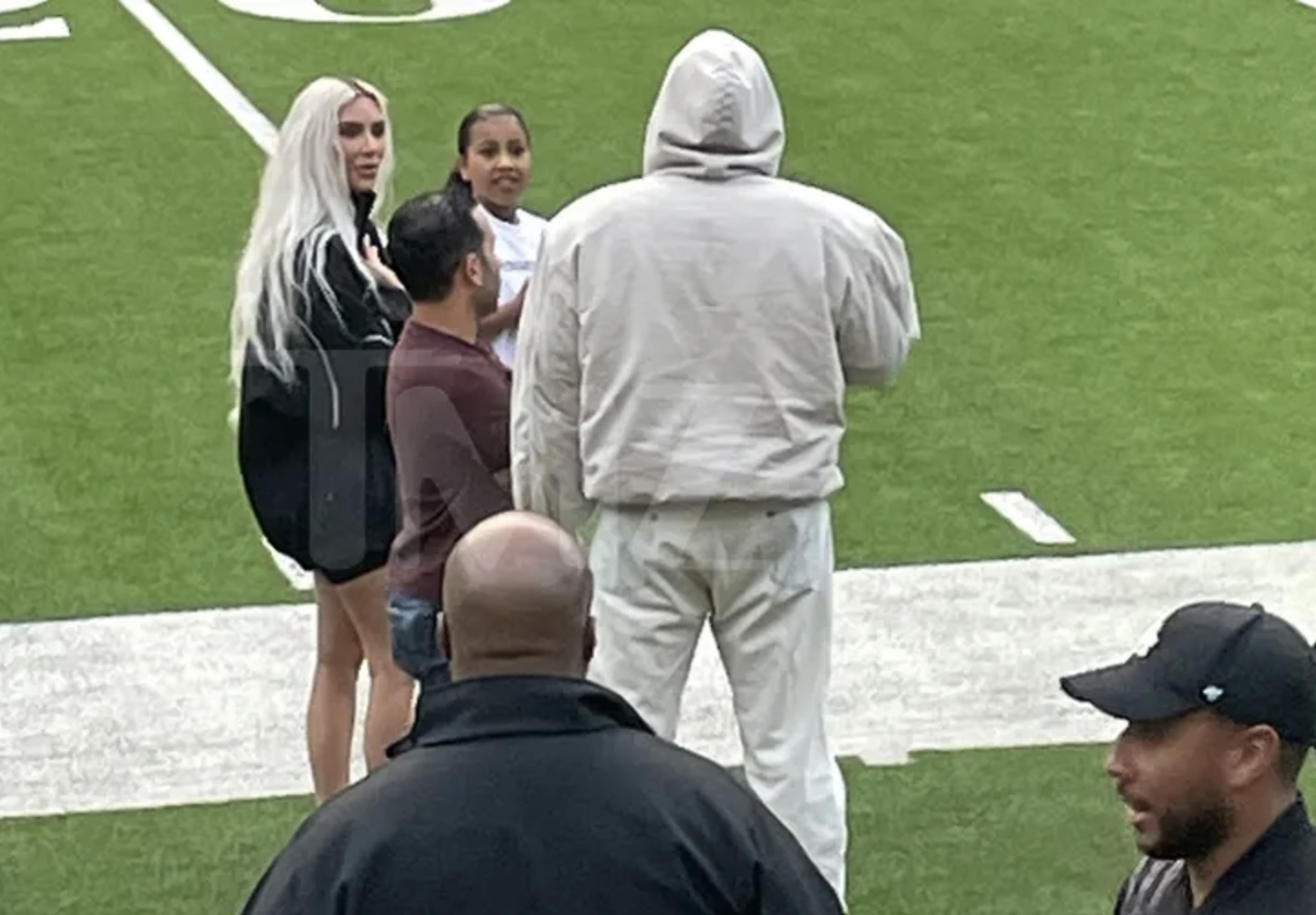 وكشف موقع “TMZ”، عبر صور حصريه أن الثنائي كيم كارداشيان وكانييه ويست، أجروا محادثة جانبية، خلال حضورهم إحدى مباريات كرة القدم التي يلعبها ابنهما “سانت”.