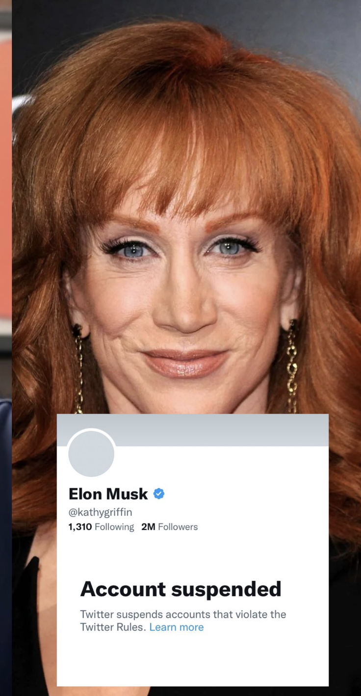 وتعود البداية عندما غيرت الممثلة الكوميدية كاثي جريفين 62 عاما، اسم ملفها الشخصي إلى Musk، فيما ظل اسمها صحيحا علي اسم المستخدم @kathygriffin، ليظهر اللقب وبجانبه علامة التوثيق الزرقاء باسم "Elon Musk"، وهو ما يتعارض مع سياسة الشركة ضد انتحال الهوية، وهو ما دفع إيلون ماسك لحظر حسابها علي تويتر للأبد.