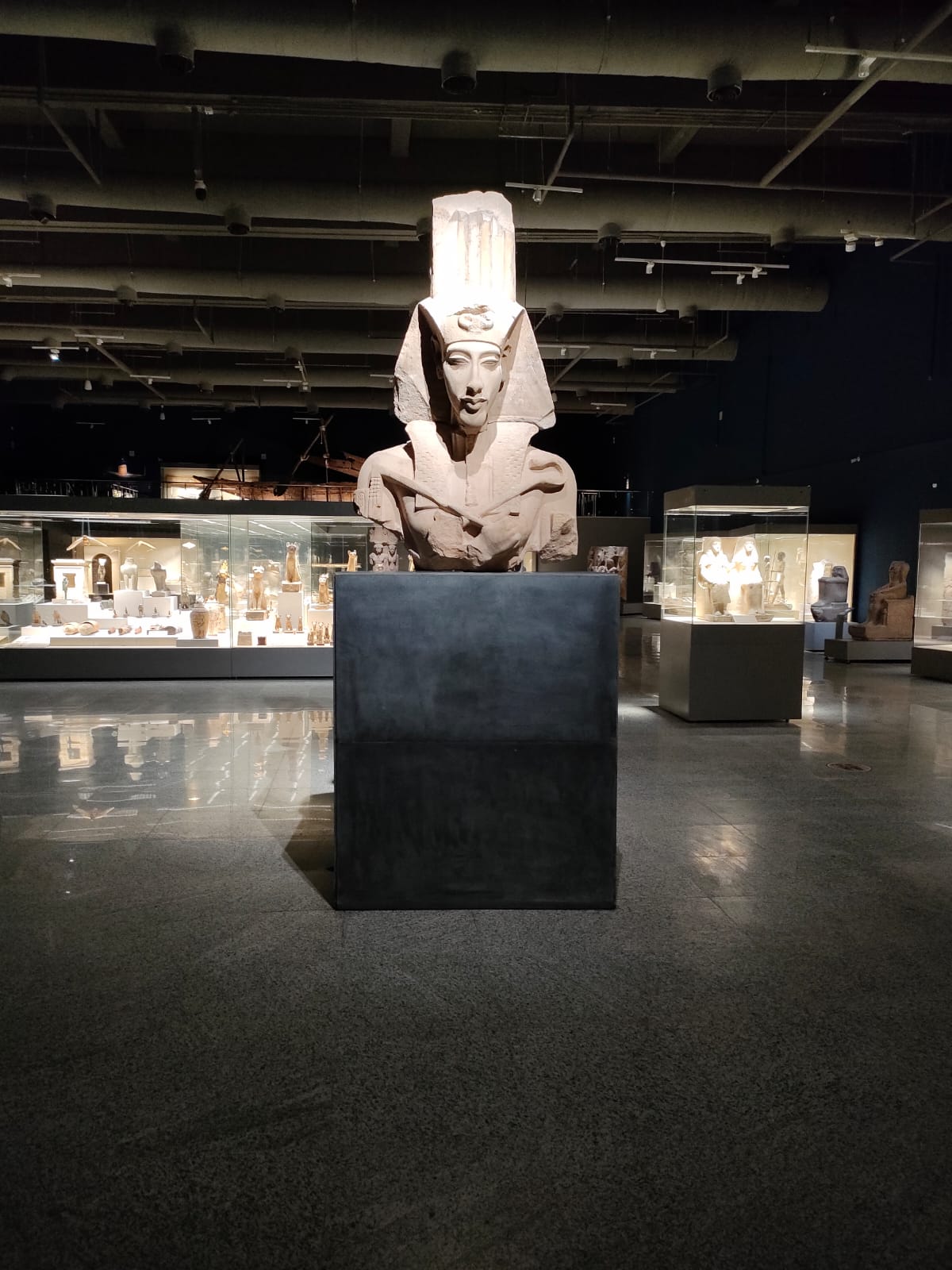 وأوضح الدكتور محمود مبروك مستشار وزير السياحة والآثار للعرض المتحفي ونائب رئيس اللجنة العليا لسيناريو المتاحف، أن أبرز القطع التي يعرضها المعرض الجزء العلوي من تمثال الملك اخناتون يعلوه تاج المعبود شو إله الهواء، وقلادة عريضة من الفيانس مزينة بزخارف نباتية، ولوحة مصور عليها نقش للملك اخناتون يقدم العطايا ويتعبد مع عائلته للمعبود آتون اله الشمس، وقطعتين للمعبود حابي معبود النيل مصورا في هيئة آدمية، ولوحه للملك اخناتون وزوجته نفرتيتي.