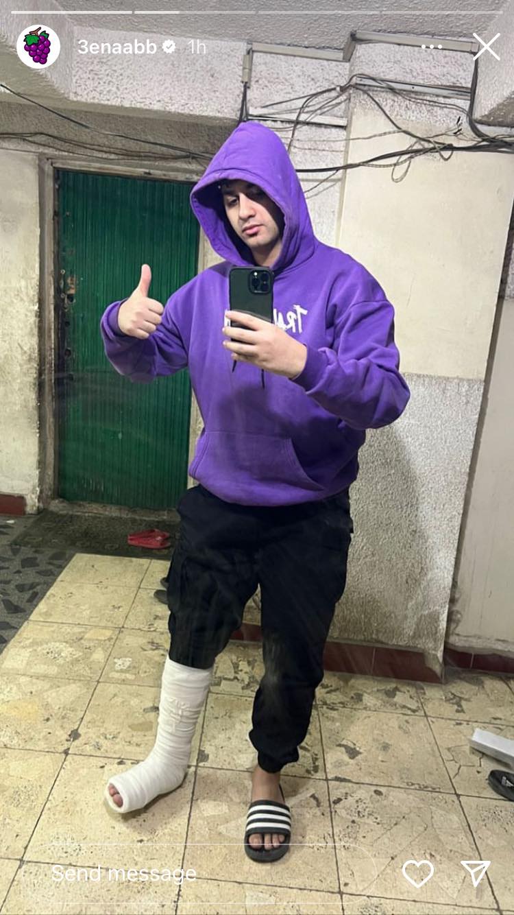 ونشر مطرب المهرجانات عنبة صورته أثناء تركيب “الجبس” على قدمه وعلق قائلًا: “الحمد لله على كل حال”.