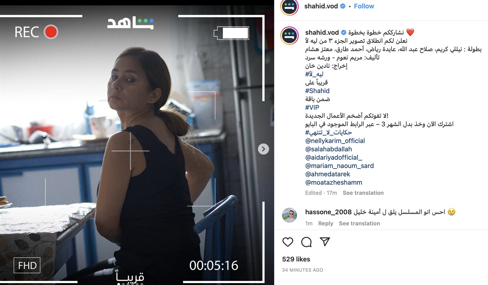 كشف الحساب الرسمي لمنصة شاهد vip عن انطلاق تصوير الجزء الثالث من مسلسل ليه لأ والذي تقوم ببطولته الفنانة نيللي كريم ونشر الحساب صورة للنجمة نيللي مع تعليق “نشارككم خطوة بخطوة ❤️ نعلن لكم انطلاق تصوير الجزء ٣ من ليه لأ بطولة: نيللي كريم، صلاح عبد الله، عايدة رياض، أحمد طارق، معتز هشام تأليف: مريم نعوم - ورشه سرد إخراج: نادين خان #ليه_لأ قريبًا على #Shahid”.