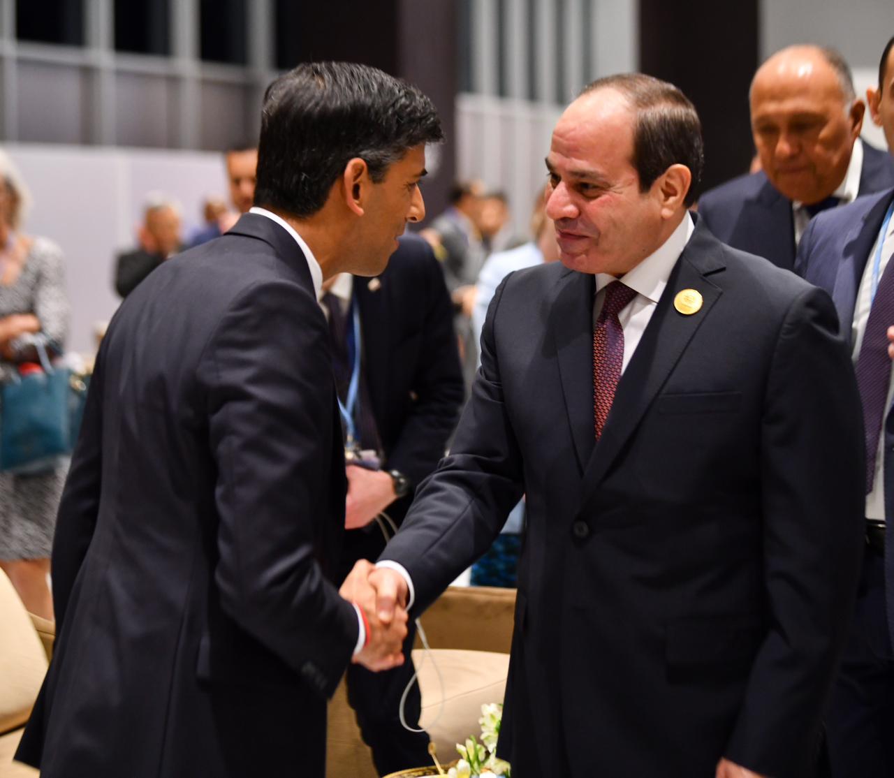استقبل الرئيس عبد الفتاح السيسي اليوم في شرم الشيخ رئيس الوزراء البريطاني ريشي سوناك، وذلك على هامش انعقاد القمة العالمية للمناخ COP27".