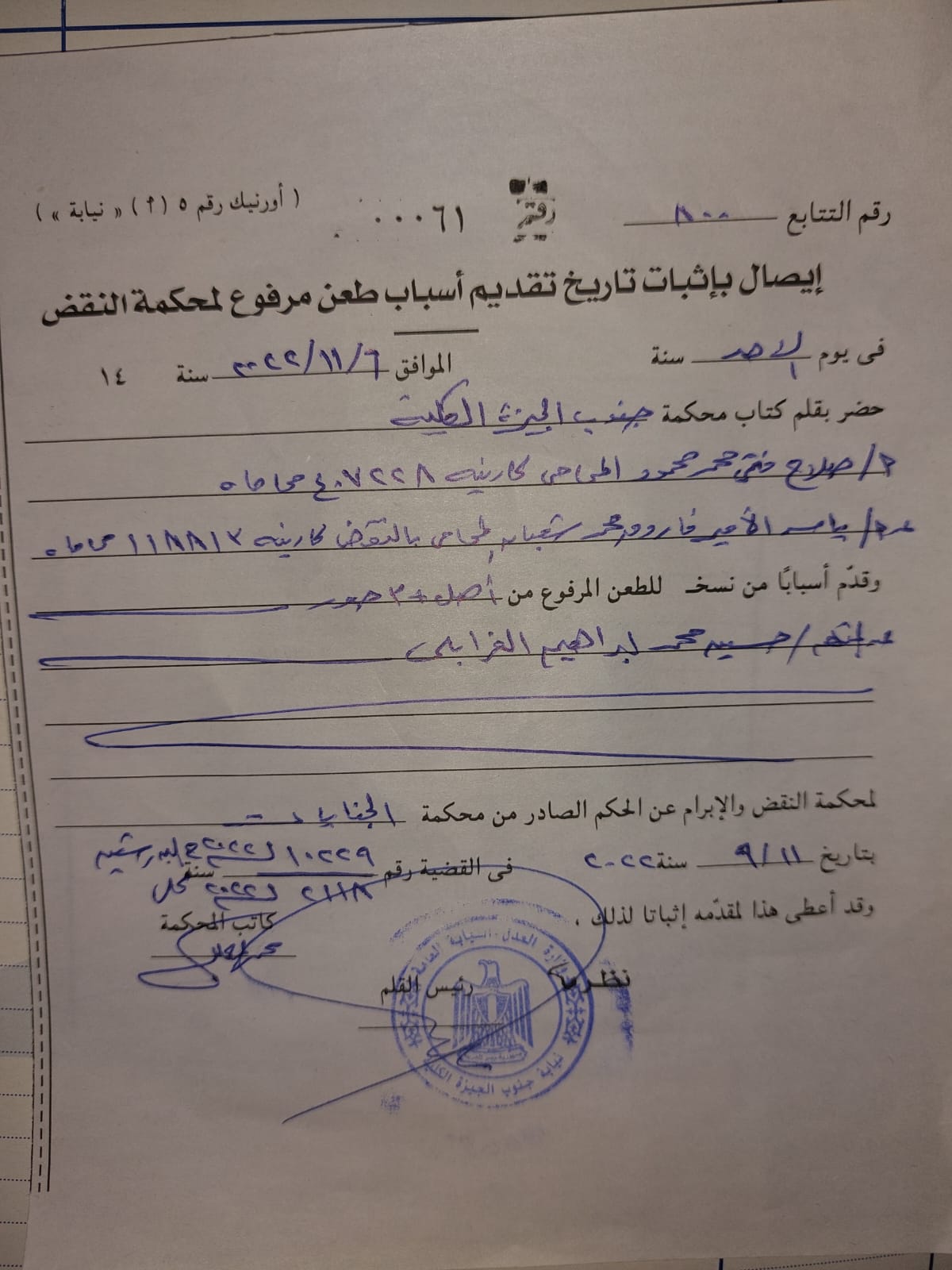 أودع الدكتور، ياسر الأمير اليوم مذكرة أسباب الطعن بالنقض تحت رقم ٦٠٠ تسلسل في حكم الإعدام الصادر من محكمة جنايات الجيزة في ٩/١١/ ٢٠٢٢ بحق كل من حسين الغرابلي وأيمن حجاج لقتلهما عمدا مع سبق الإصرار الإعلامية “ شيماء جمال”.