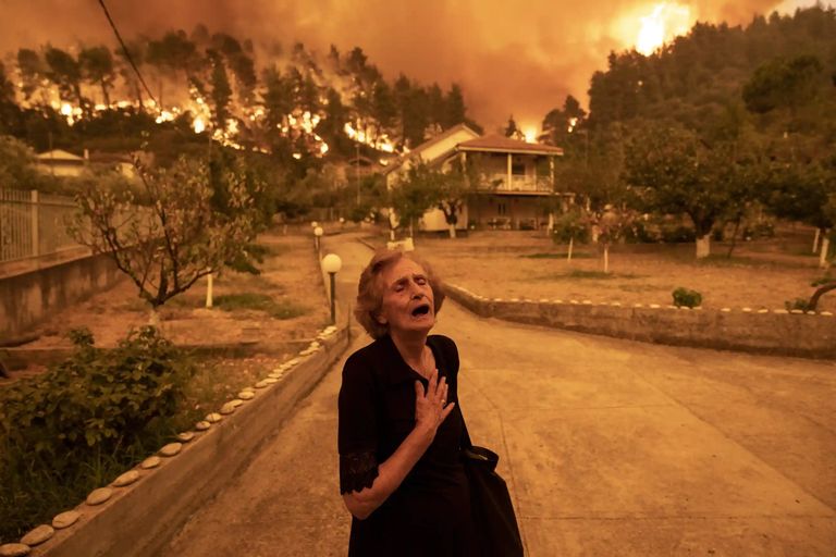 في صيف عام 2021، اندلعت حرائق الغابات عبر البحر الأبيض المتوسط، أصبحت هذه الصورة لامرأة مسنة تظهر في ضوء اللهب البرتقالي رمزا لا يُنسى للدمار.