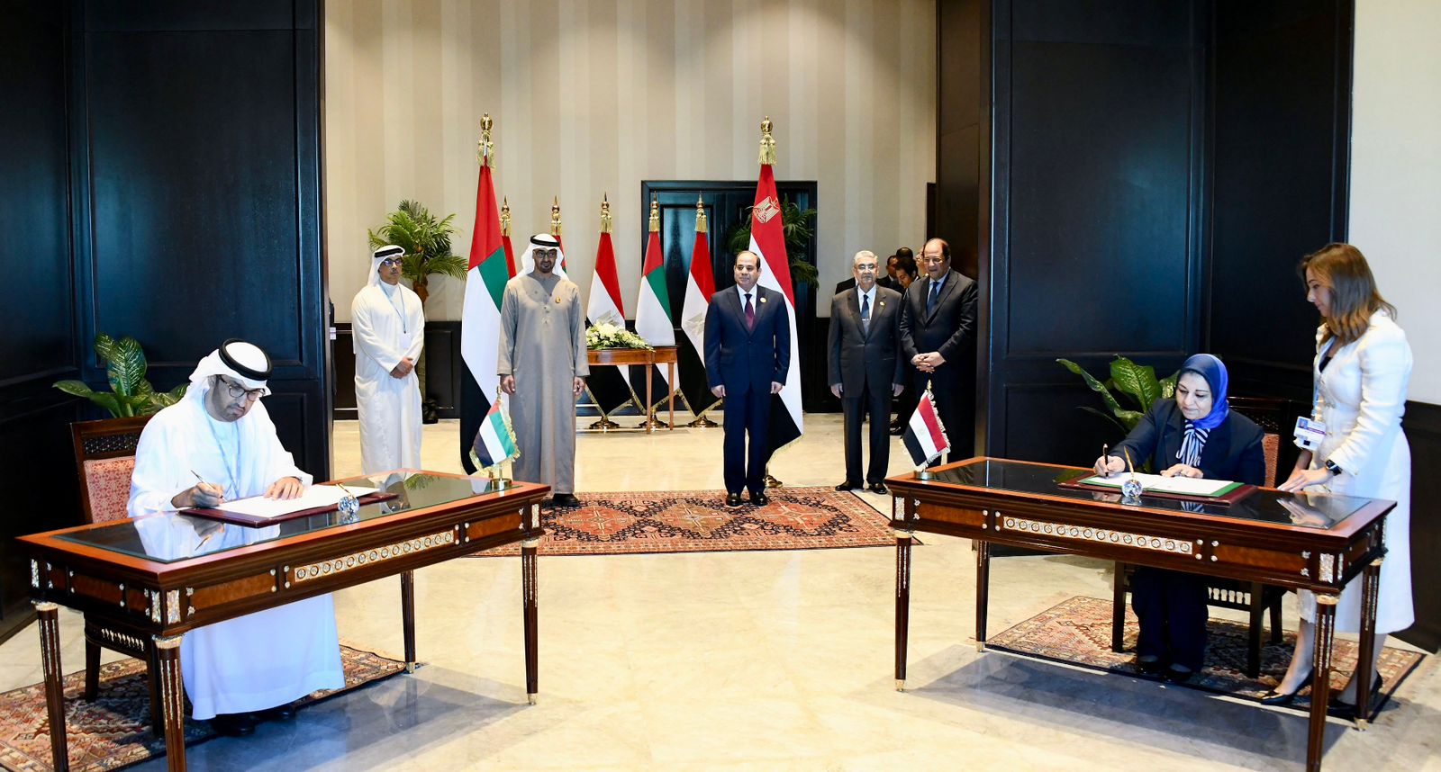 السيسي وبن زايد يشهدان التوقيع على مذكرة تفاهم لتطوير مشروع القياسات الخاصة بإنشاء محطة توليد كهرباء من الرياح| صور