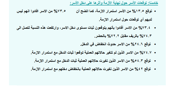 6- توقع 42% من الأسر الذين تغيرت حالاتهم العملية بانخفاض دخلهم مع استمرار الازمة.