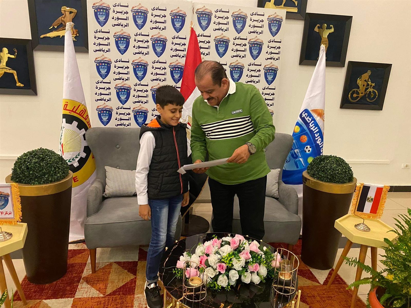 وقدم رئيس مجلس ادارة نادي جزيرة الورد شهادة تقدير ودرع النادي، للطفل الأمين، كما قرر منح رحلة مجانية للطفل وأسرته، تكريما له على أمانته وموقفه المشرف للجميع.