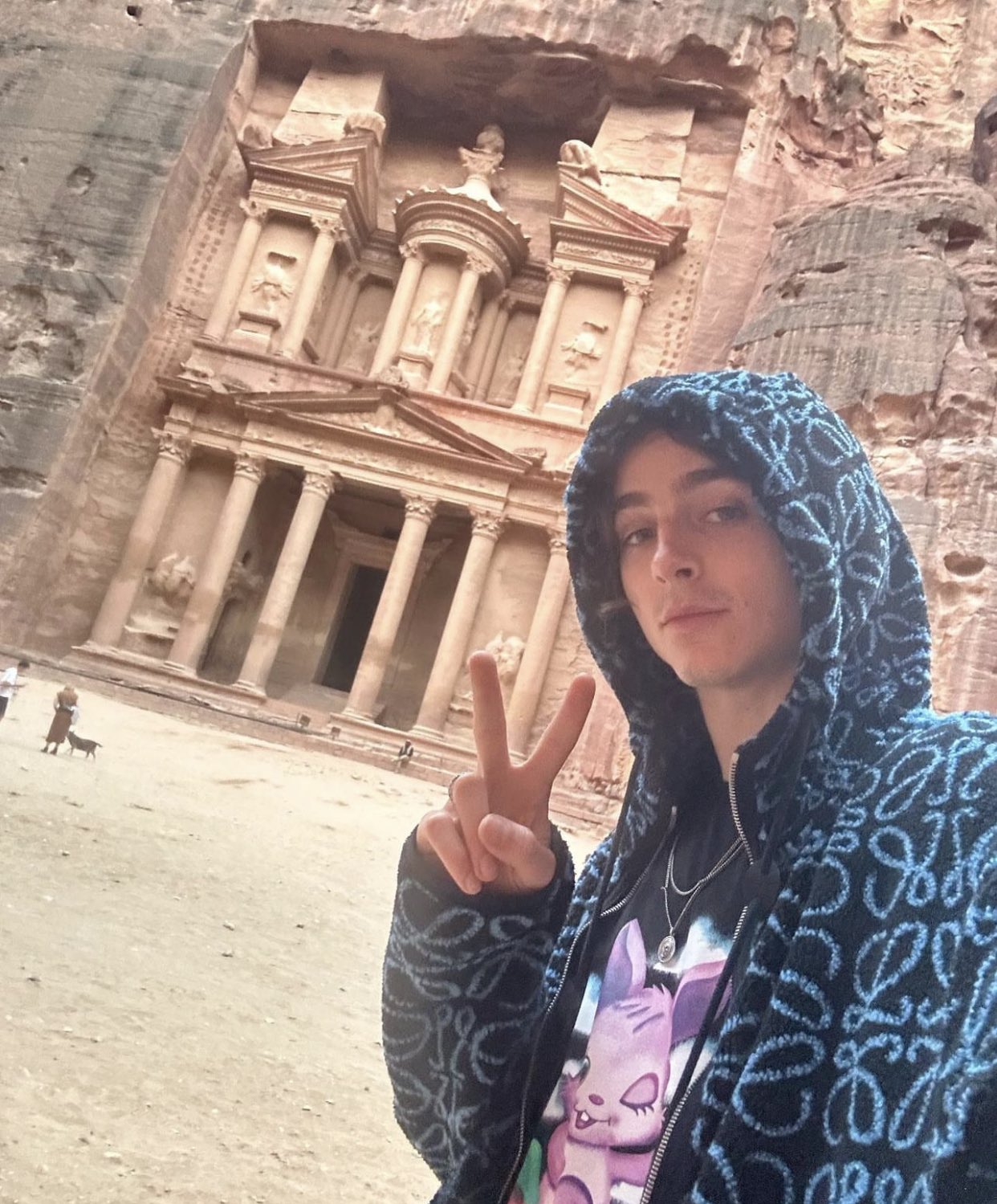 نشر الممثل الشاب تيموثي شالامي صورة سيلفي له مع أحد عجائب الدنيا السبعة وهي مدينة البتراء الأردنية، وذلك عبر حسابه الرسمي علي موقع “انستجرام”، حيث يتواجد الممثل حاليا في صحراء الأردن، مع طاقم عمل فيلم Dune.