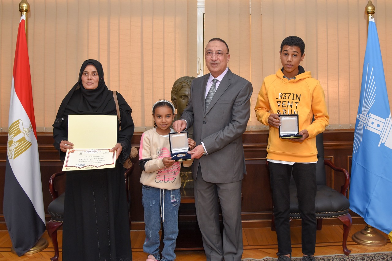 محافظ الإسكندرية يكرم أسرة الشهيد أمين الشرطة عيد يونس