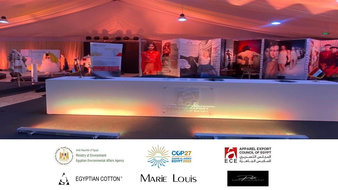 أعلن المجلس التصديري للملابس الجاهزة، المشاركة بالمنطقة الخضراء فى المؤتمر العالمى للمناخ cop27 بالتعاون مع وزارة البيئة حيث تم إقامة معرض كبير بمشاركة عدد من الهيئات والشركات والمصانع المصرية المصدرة العاملة فى قطاع الملابس الجاهزة والمنسوجات والغزل والتصميم والموضة تحت مسمى “Fashion and Textile Sustainable Hub - Trend area"