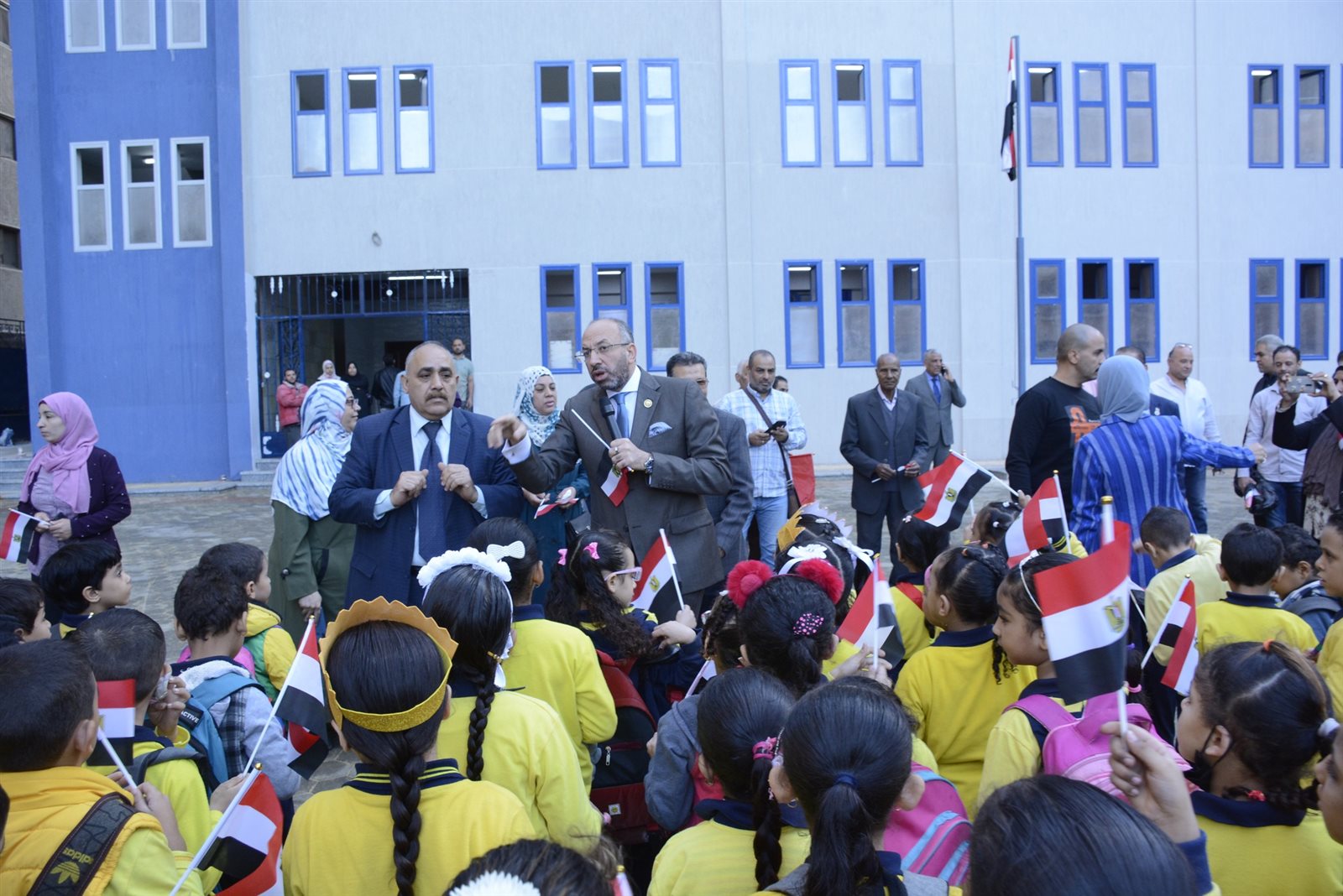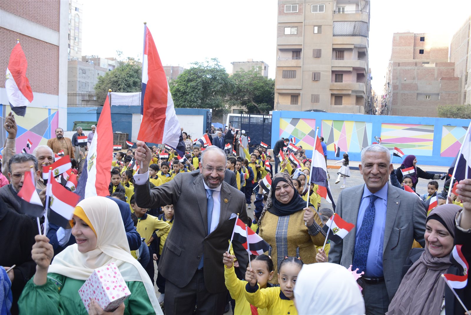 ومن جانبه أكد النائب الدكتور حسام المندوه أن إصراره على حضور الطابور الصباحي في هذا العدد الكبير من مدارس بولاق خلال الأيام الماضية هو تأكيد أن الزيارات الميدانية تأتي بنتائج إيجابية خاصة إذا كان الهدف منها وطني مع الاطمئنان على سير العملية التعليمية ومشيرًا إلى أن مبادرة “في حب مصر” مع طلاب المدارس أثلجت صدري بعد التفاعل الكبير الذي وجدته من الطلاب وأولياء الأمور وجميع أعضاء العملية التعليمية في هذه المدارس وفي بولاق الدكرور بشكل عام.