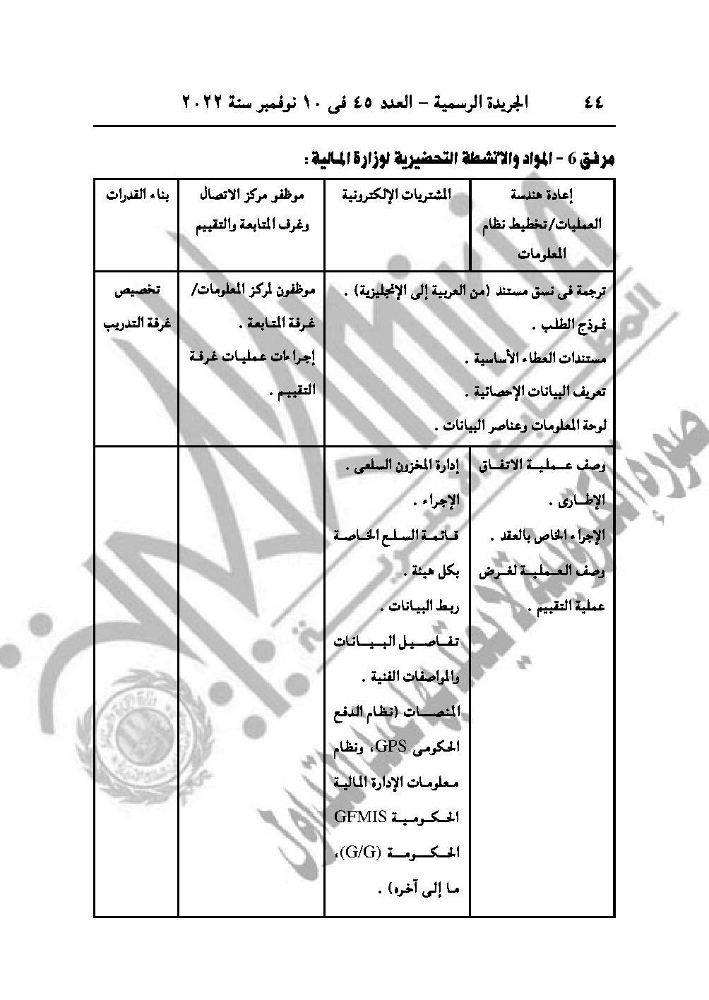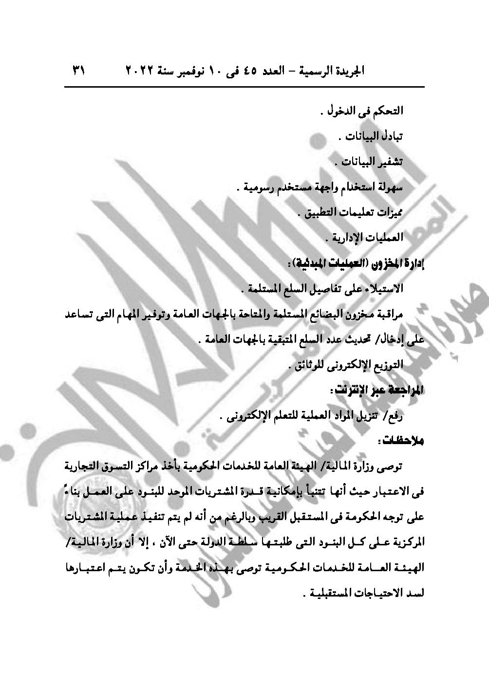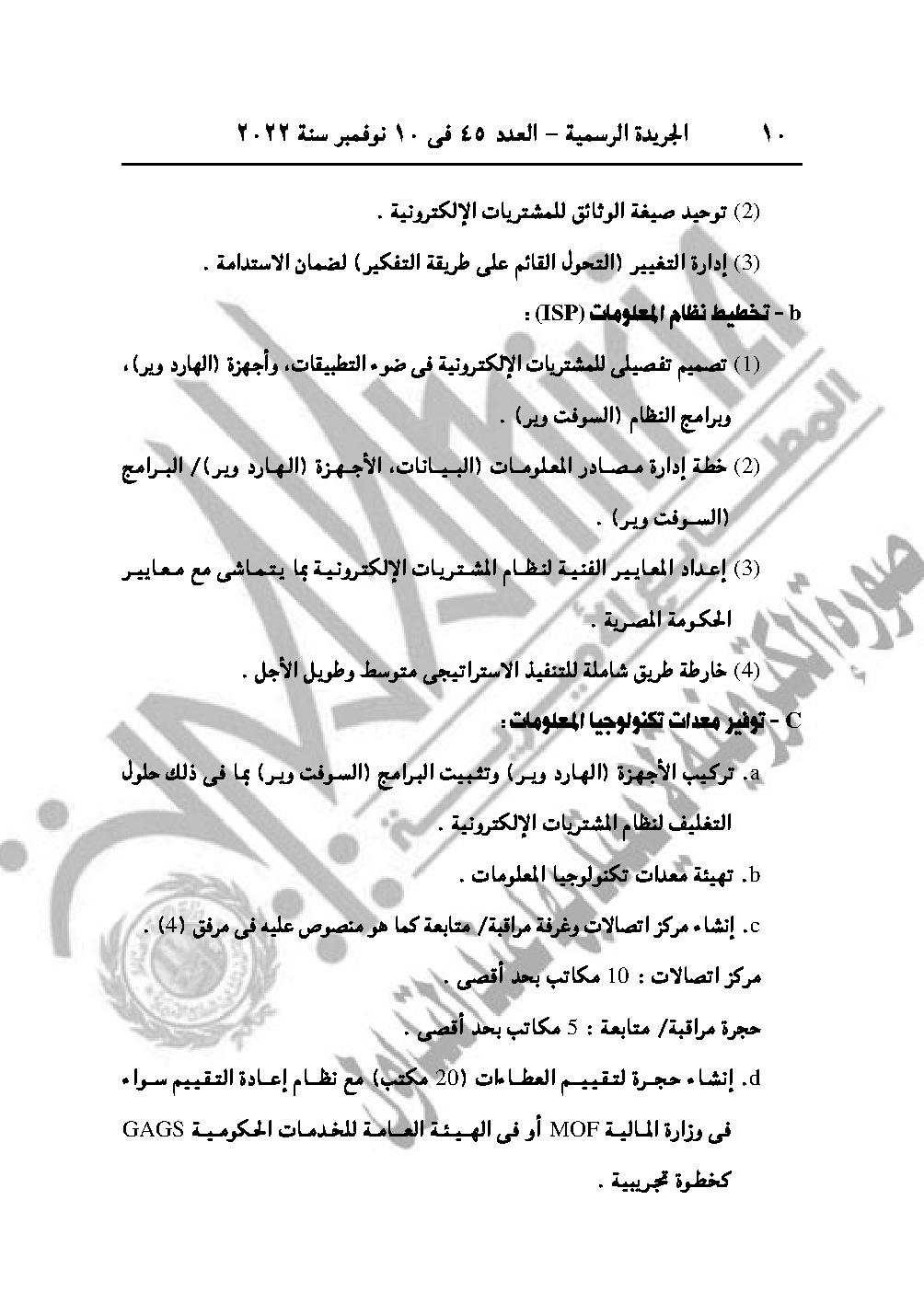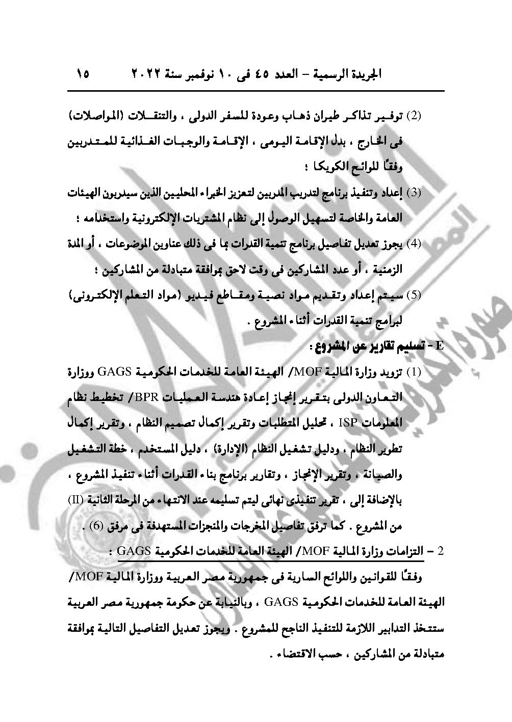 -قرار رئيس الجمهورية رقم 192 لسنة 2022، بشأن الموافقة على الخطابات المتبادلة بين حكومة جمهورية مصر وحكومة جمهورية كوريا بشأن تقديم حكومة كوريا إلى حكومة مصر منحة لا تتجاوز قيمتها 7 مليون و900 ألف دولار أمريكي للمساهمة في تنفيذ مشروع "تحسين نظام المشتريات الحكومية في مصر"