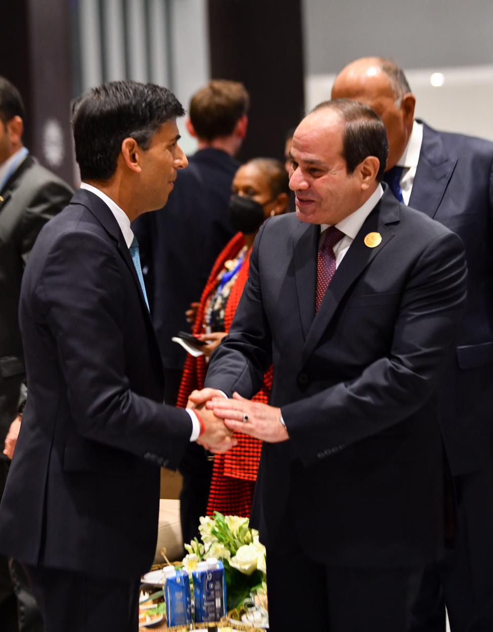كما استقبل الرئيس عبد الفتاح السيسي في شرم الشيخ رئيس الوزراء البريطاني ريشي سوناك، وذلك على هامش انعقاد القمة العالمية للمناخ COP27".